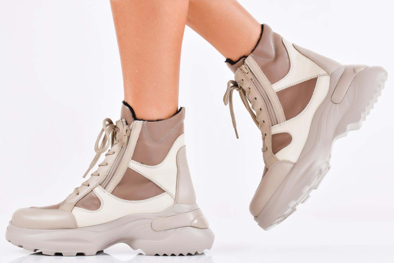 Дамски боти естествена кожа бежови EOBUVKIBG