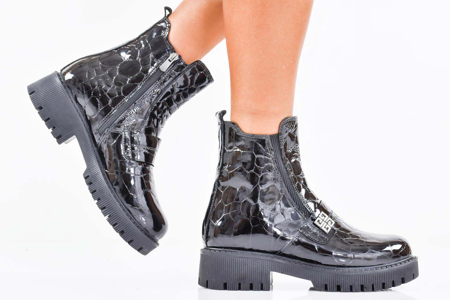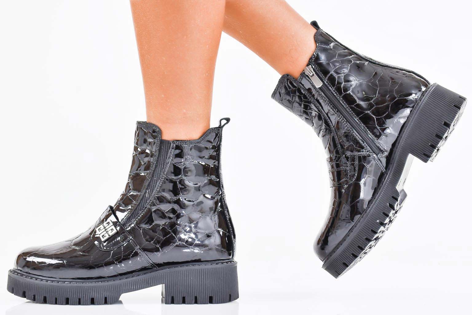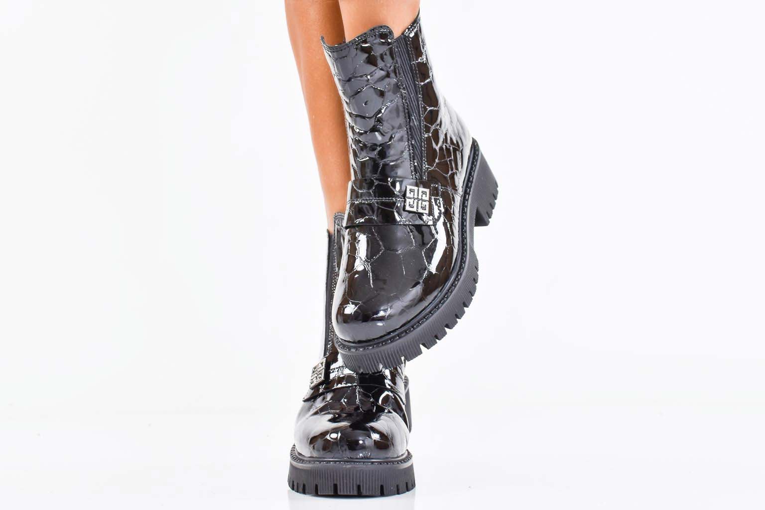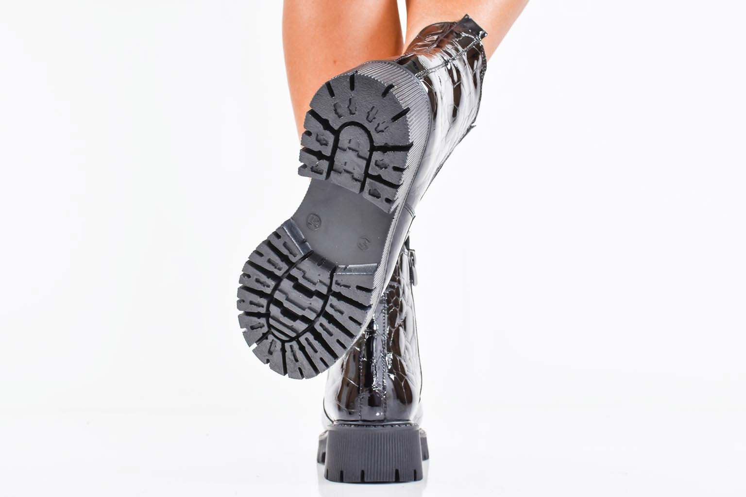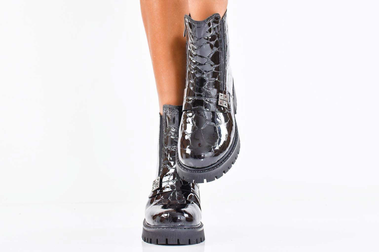 Дамски боти естествен лак черни EOBUVKIBG #502-7297