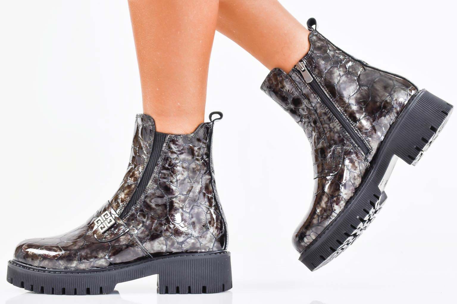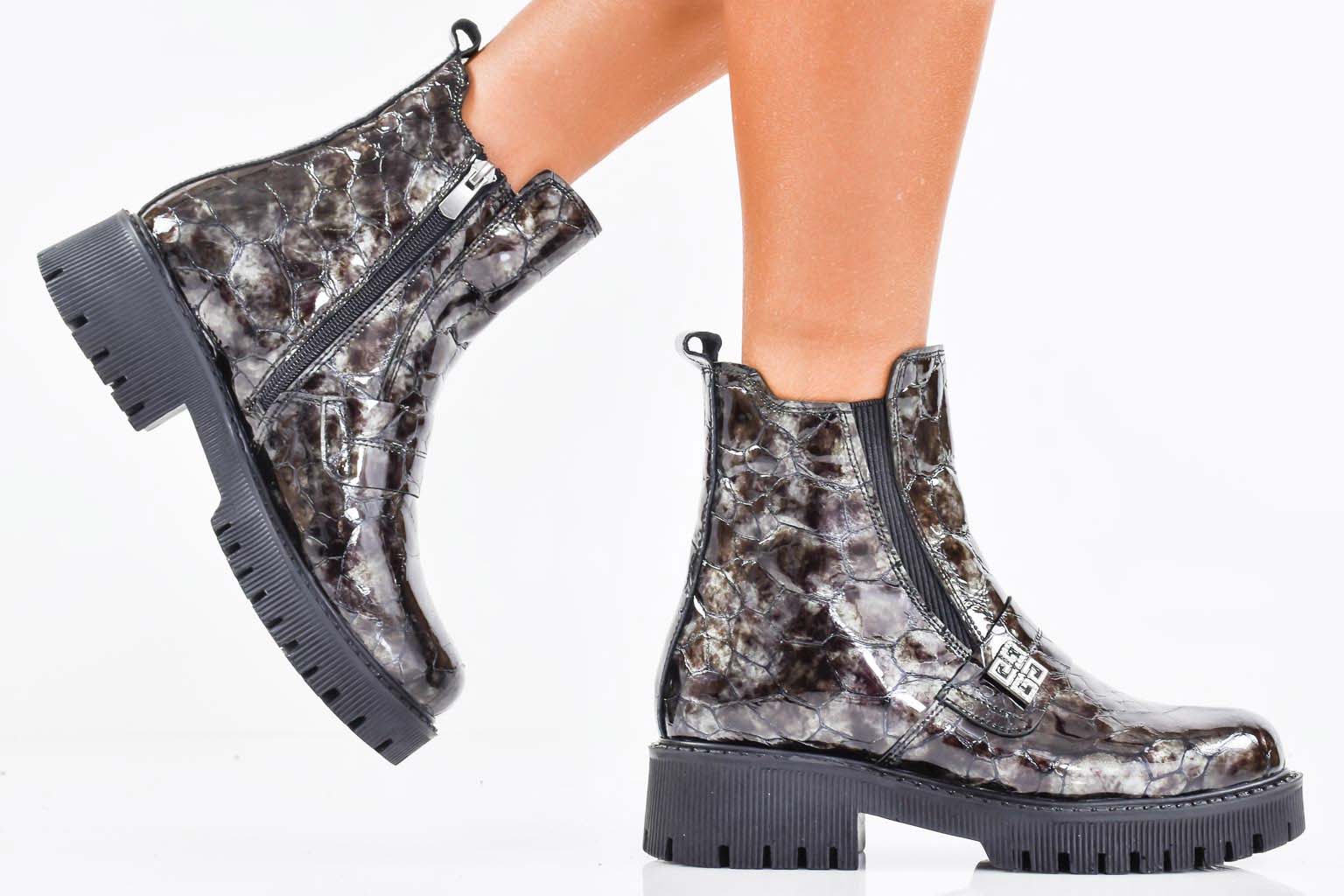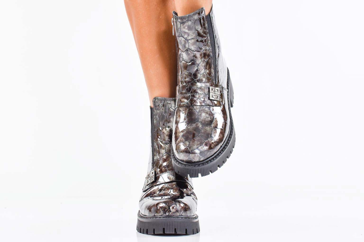 Дамски боти естествен лак черни EOBUVKIBG #502-7298