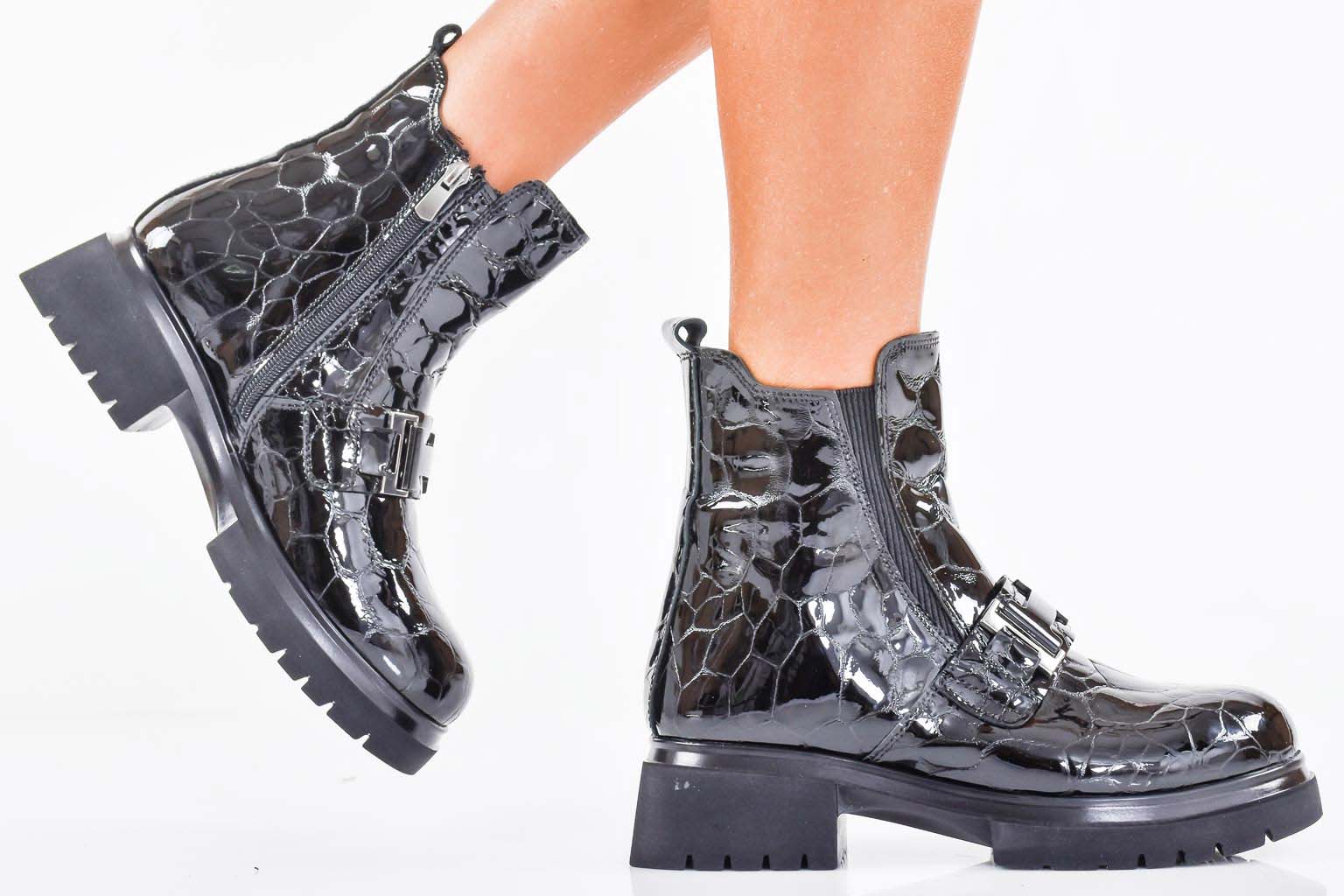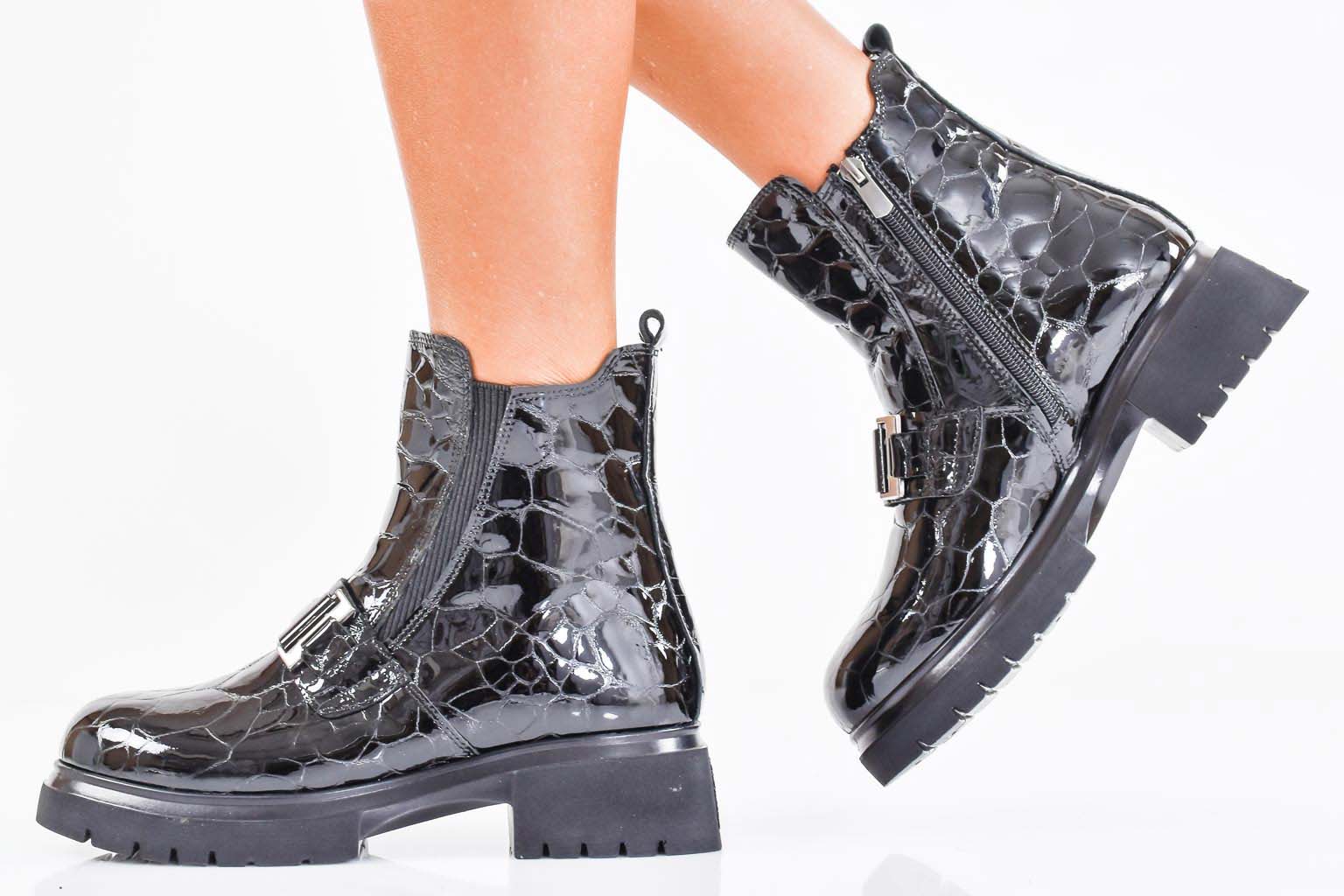 Дамски боти естествен лак черни EOBUVKIBG #502-7303