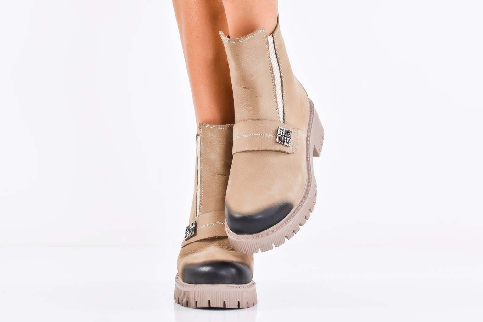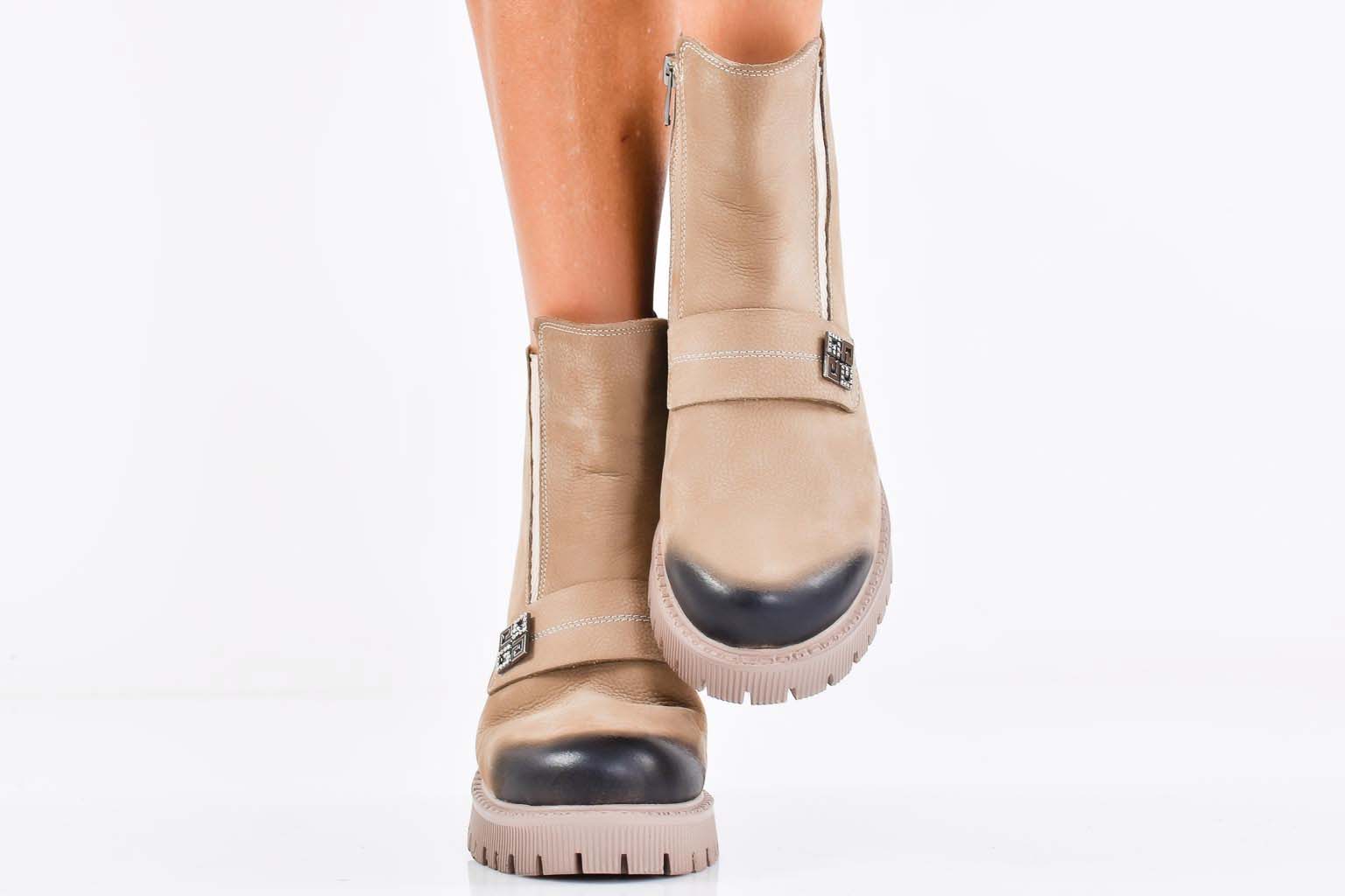 Дамски боти естествена кожа бежов EOBUVKIBG