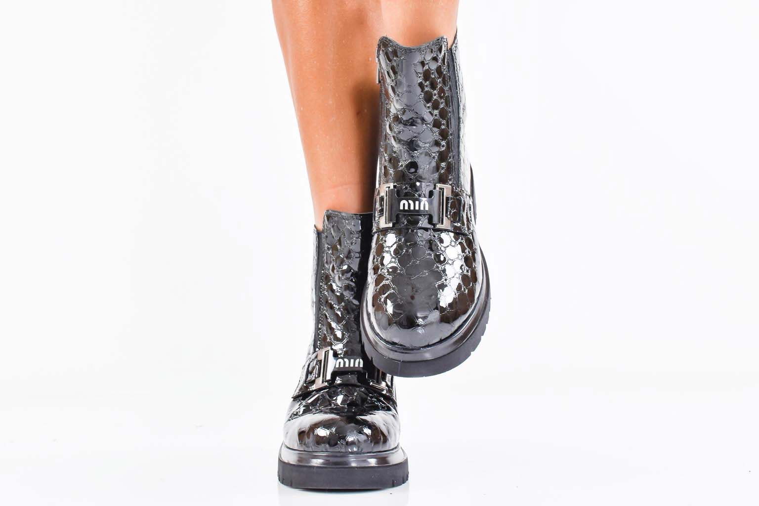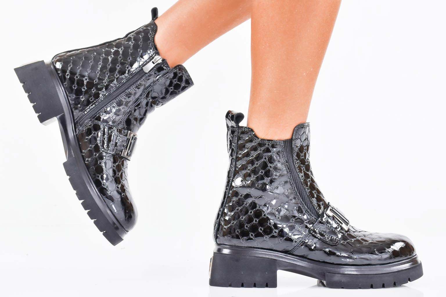 Дамски боти естествен лак черни EOBUVKIBG