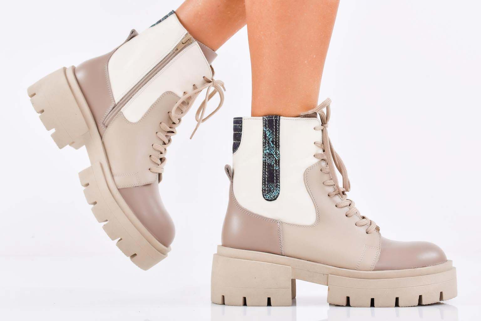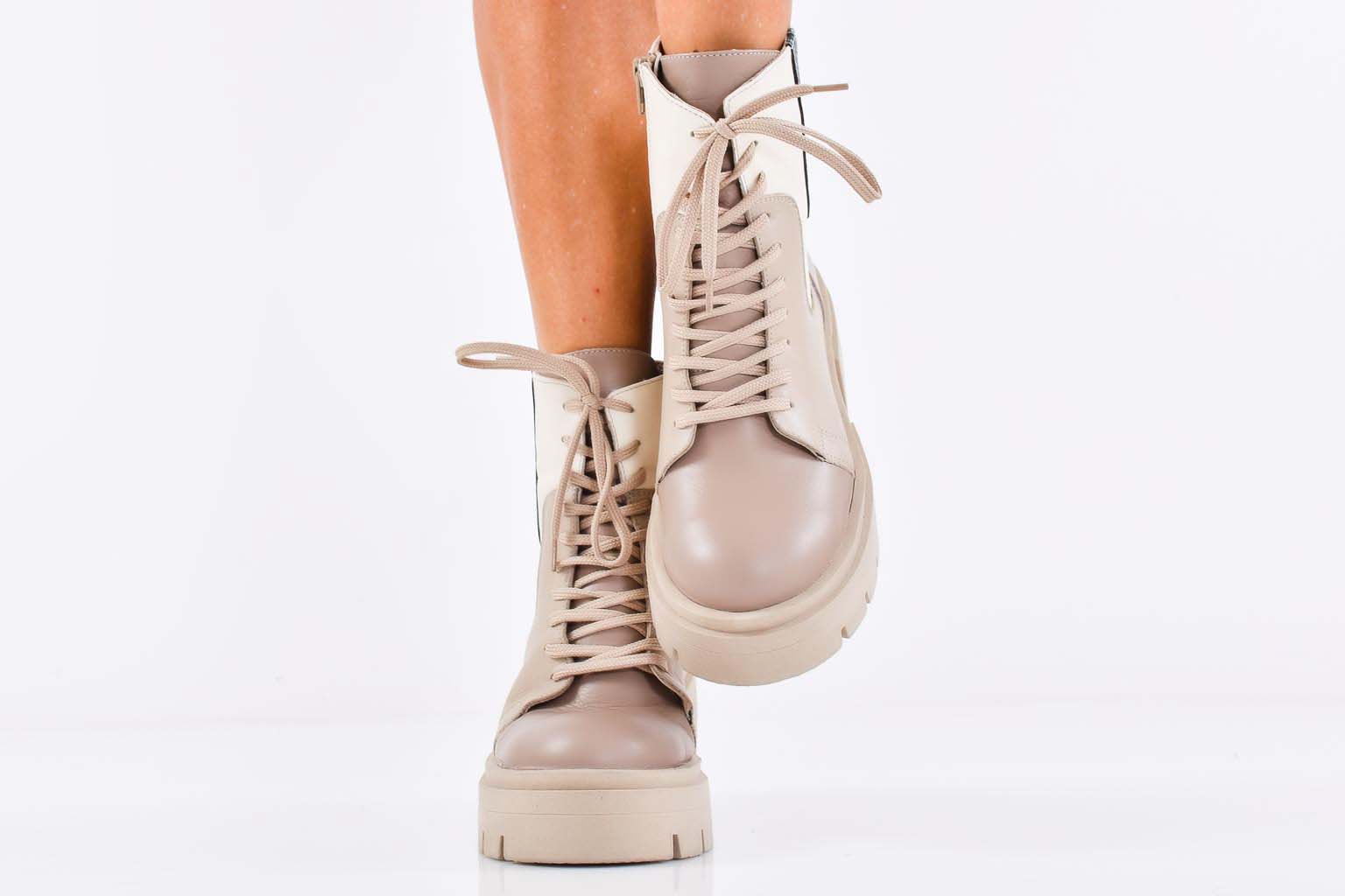 Дамски боти естествена кожа бежови EOBUVKIBG