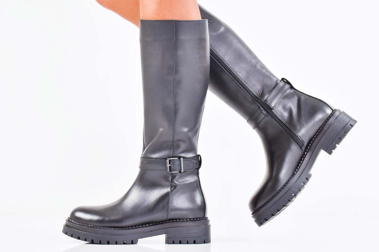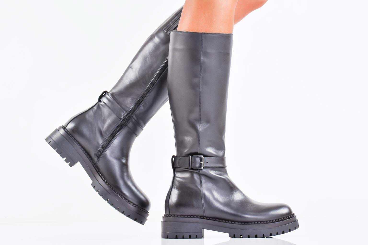 Дамски ботуши естествена кожа черни EOBUVKIBG #502-7397