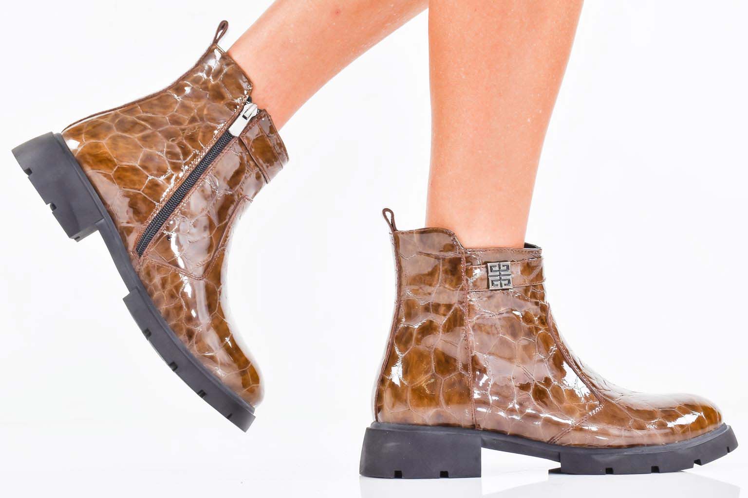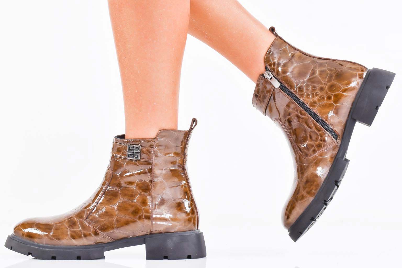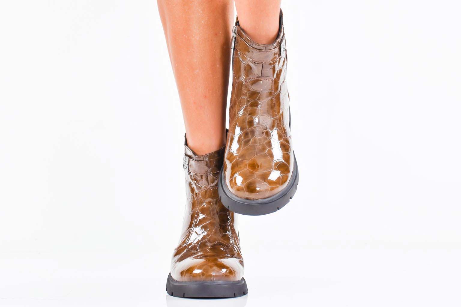 Дамски боти естествен лак кафяви EOBUVKIBG #502-7414