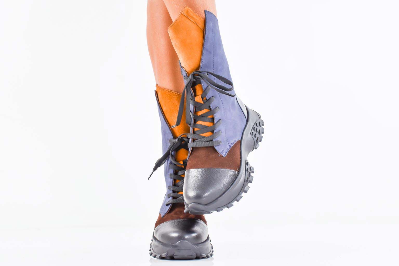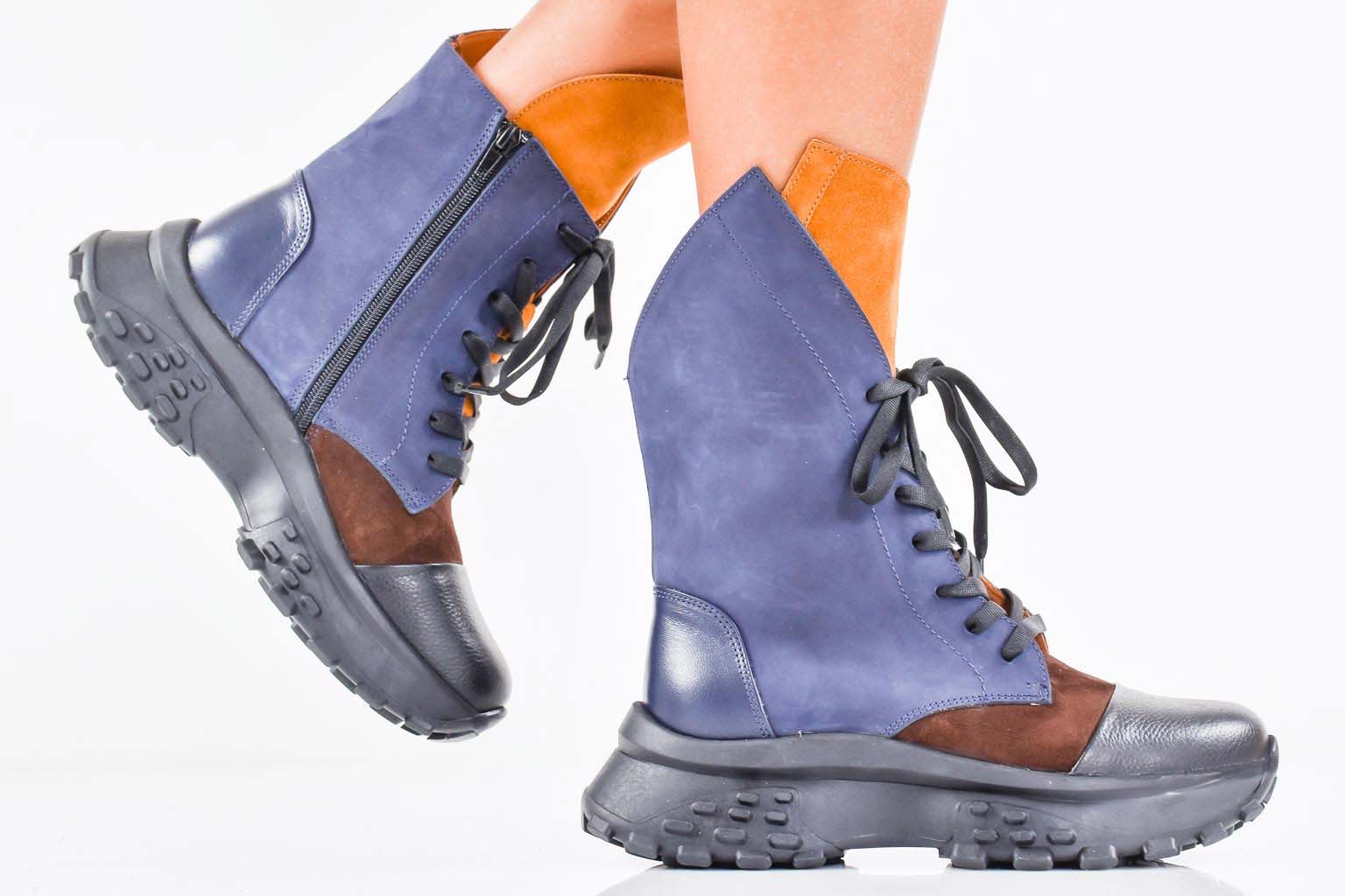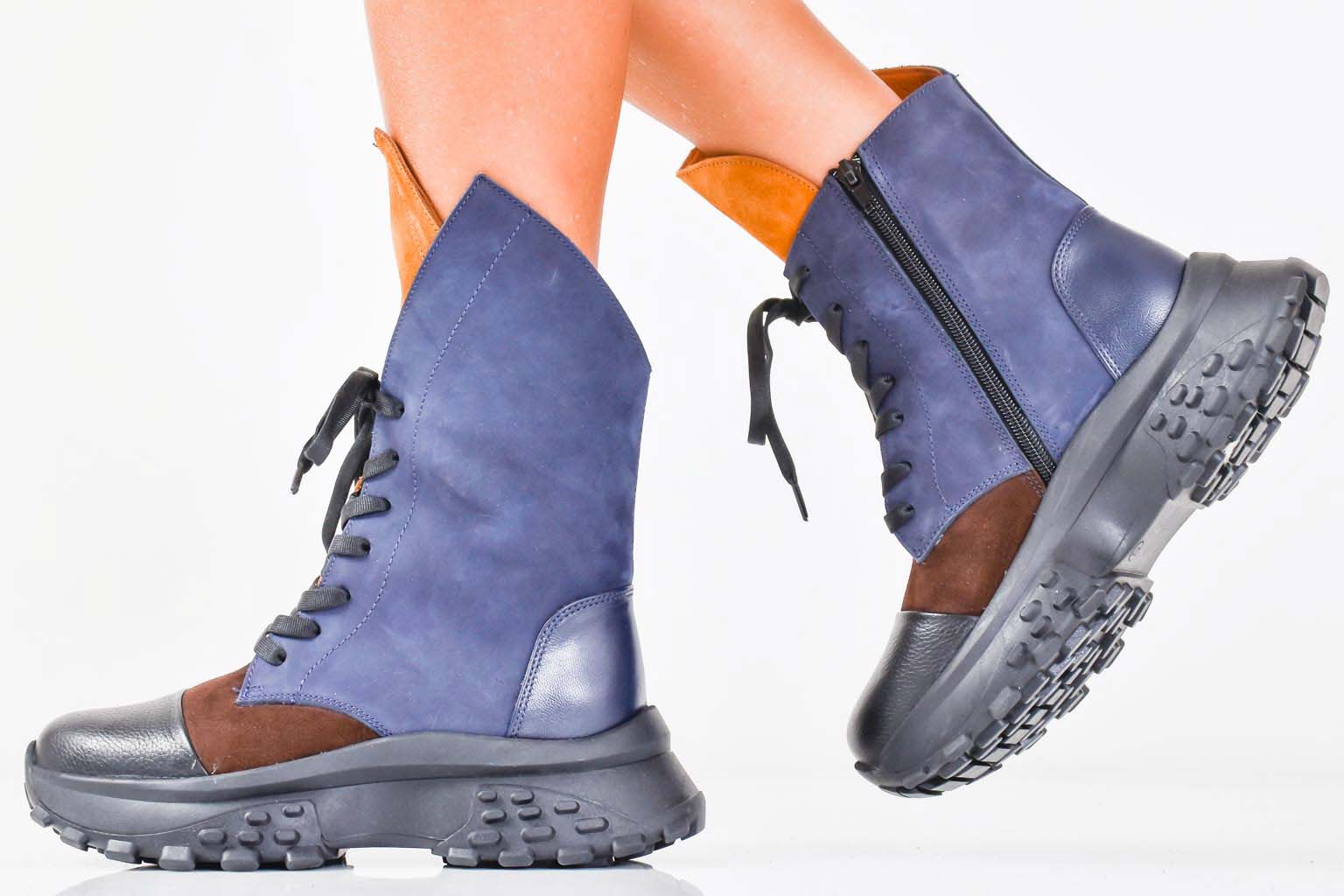Дамски боти естествена кожа сини EOBUVKIBG #502-7456