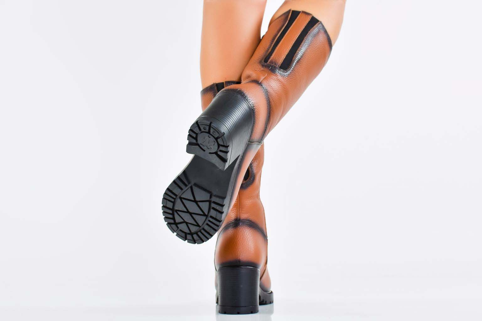 Дамски ботуши естествена кожа кафяви EOBUVKIBG #502-7487