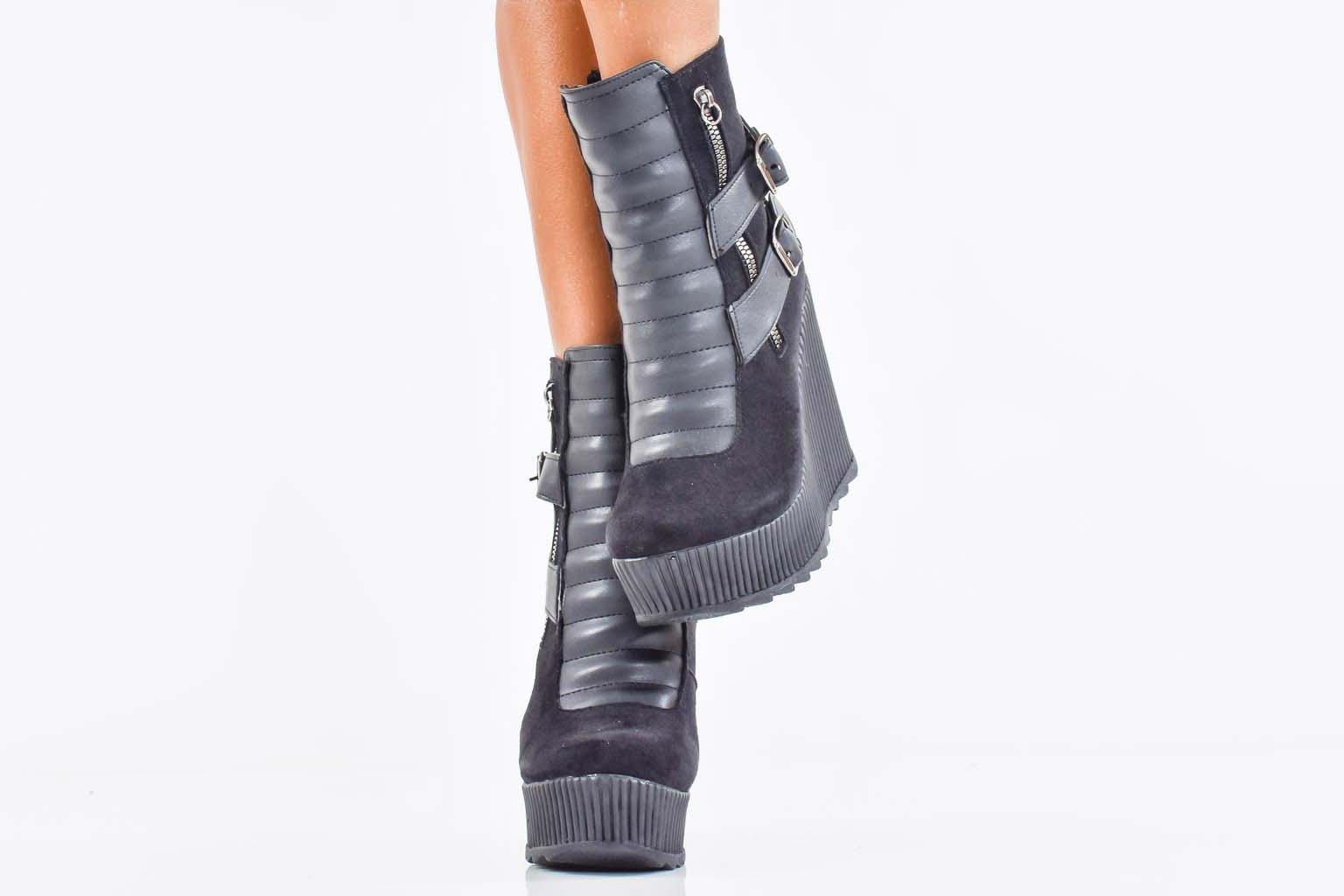 Дамски боти на платформа черни EOBUVKIBG #502-7280
