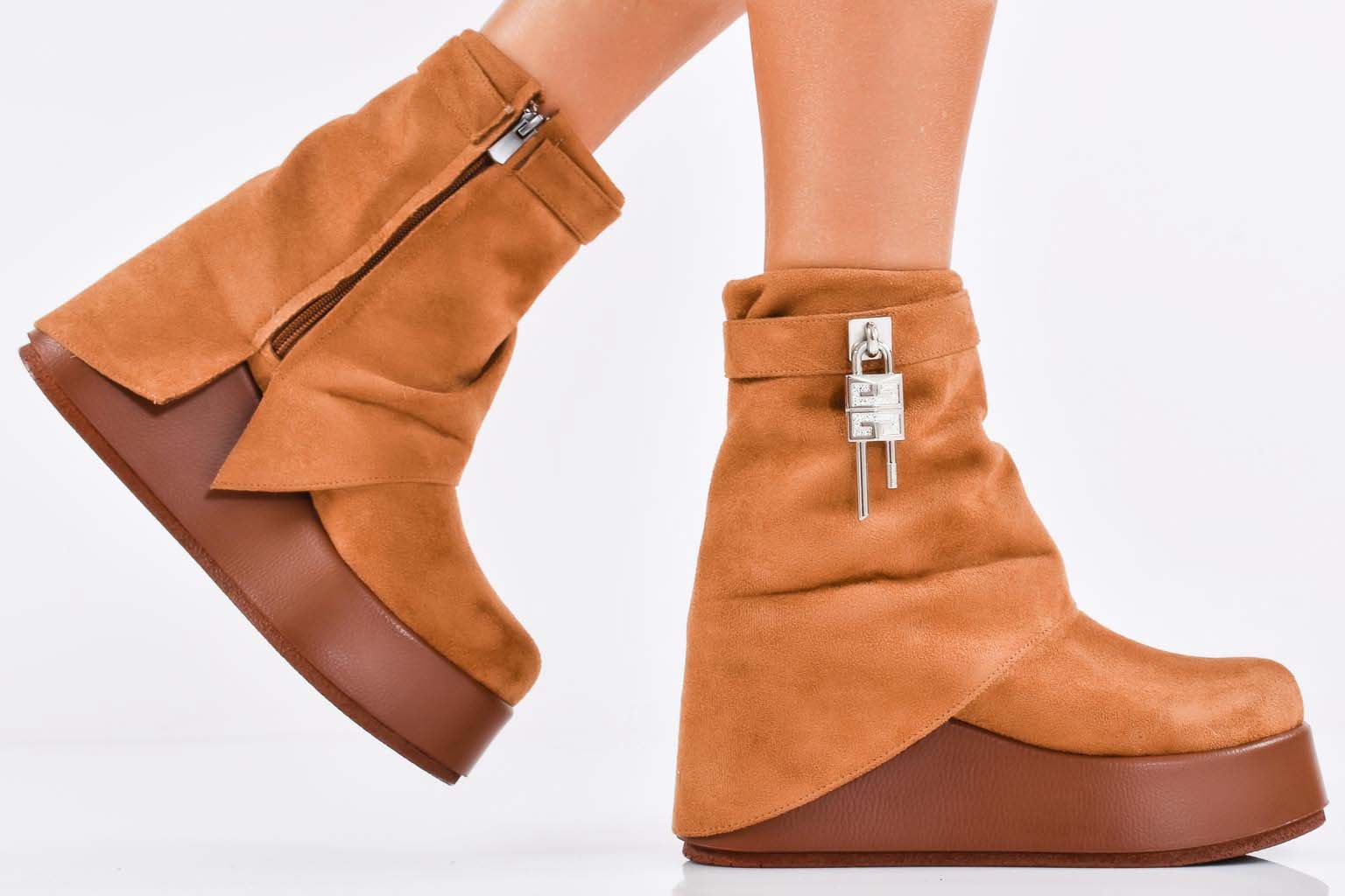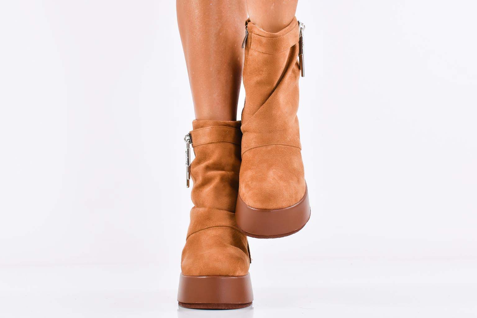 Дамски боти на платформа кафяви EOBUVKIBG #502-7266
