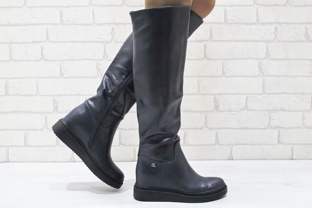 Дамски ботуши на платформа сини #18-2020-2