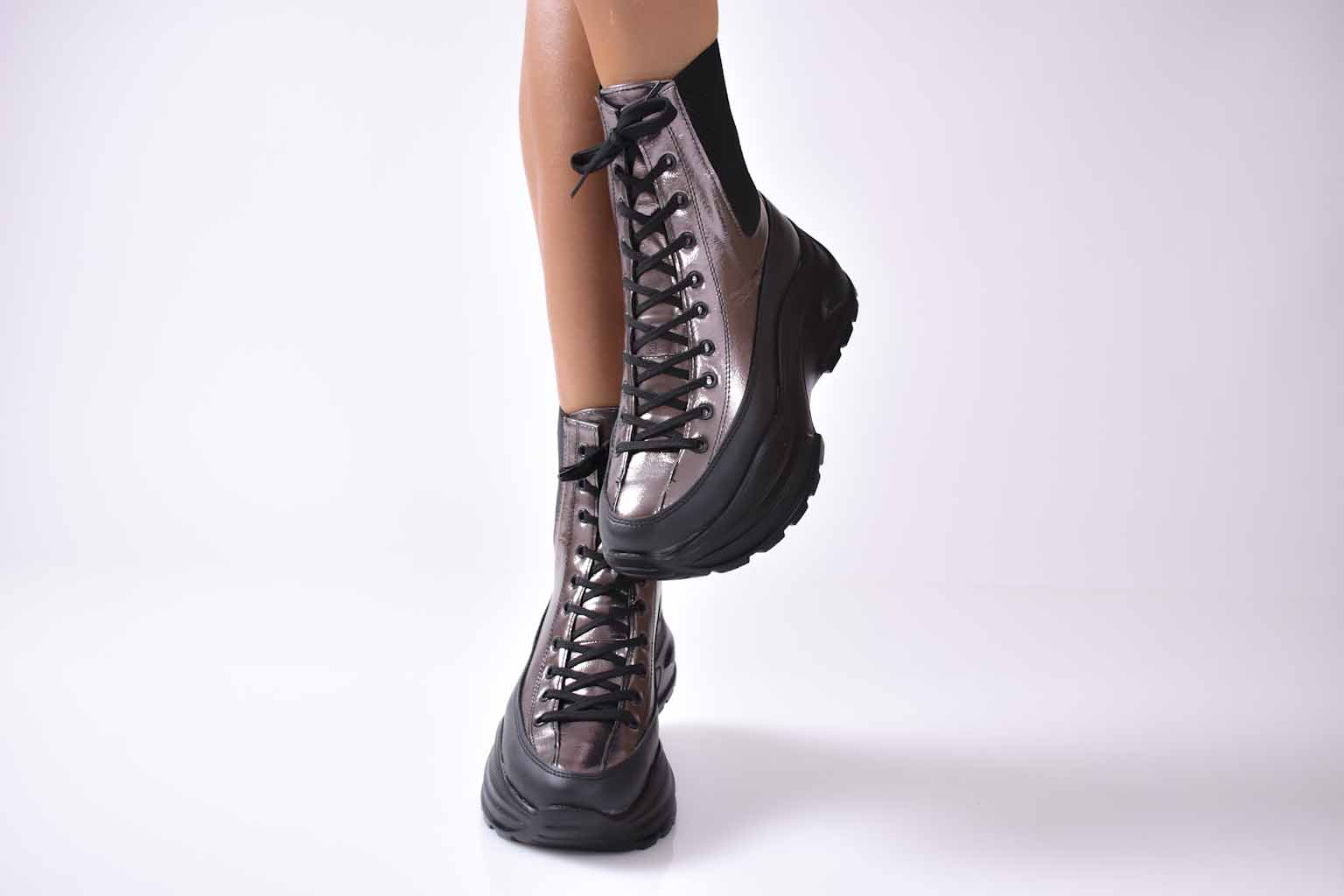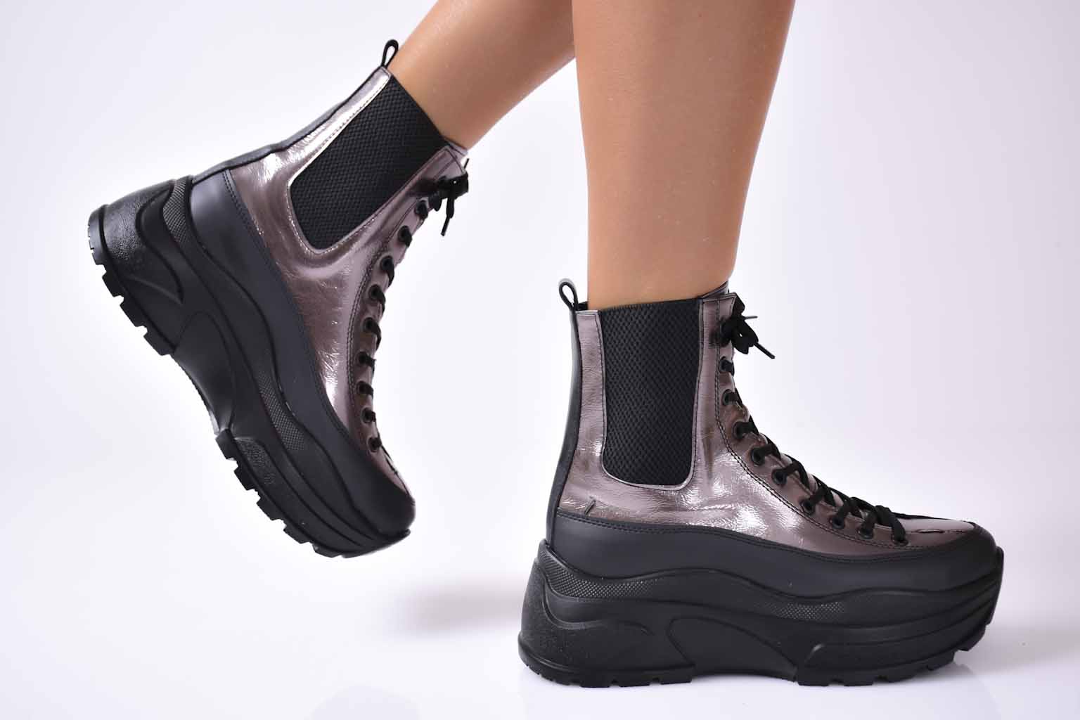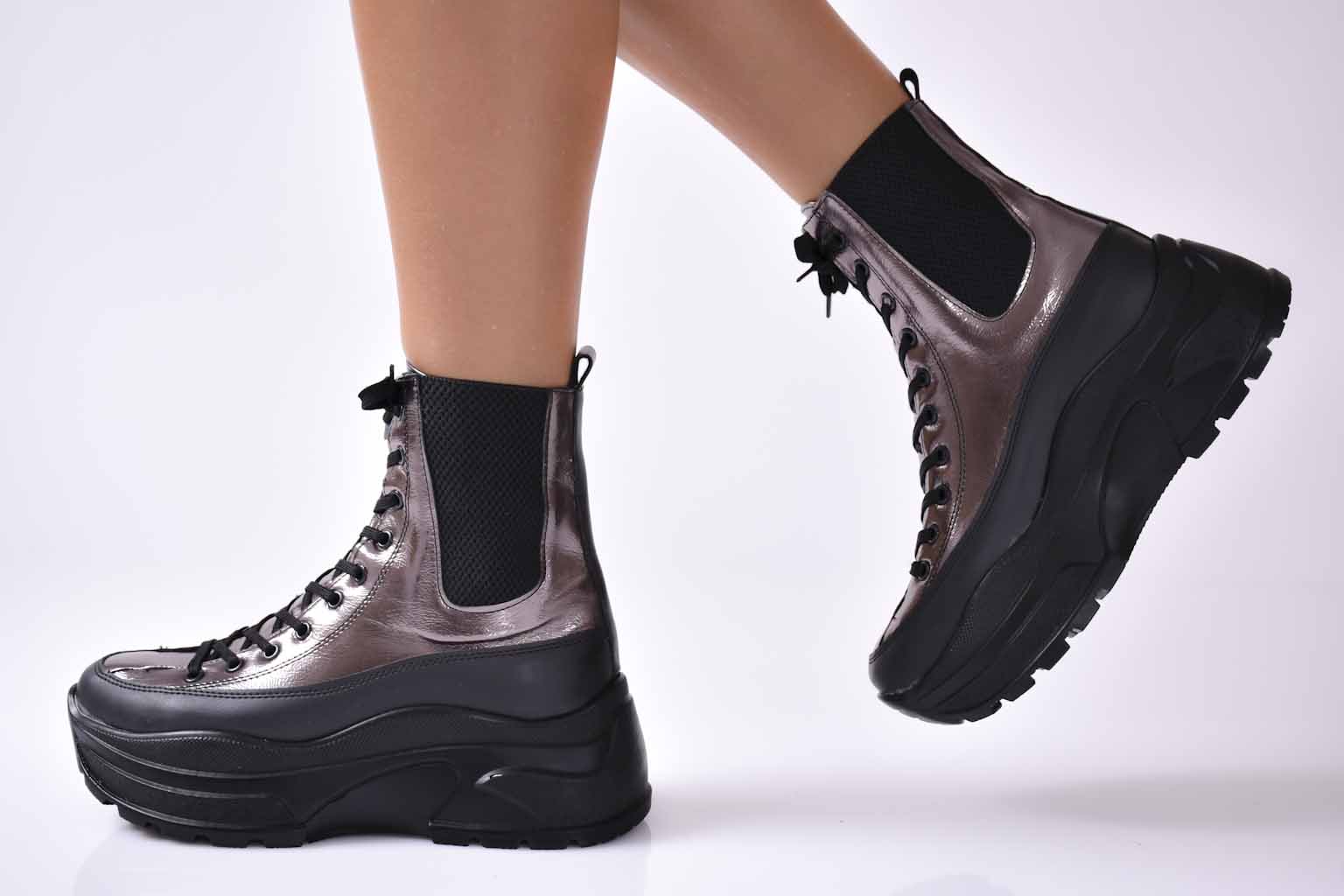 Дамски боти на платформа черни EOBUVKIBG #501-2232