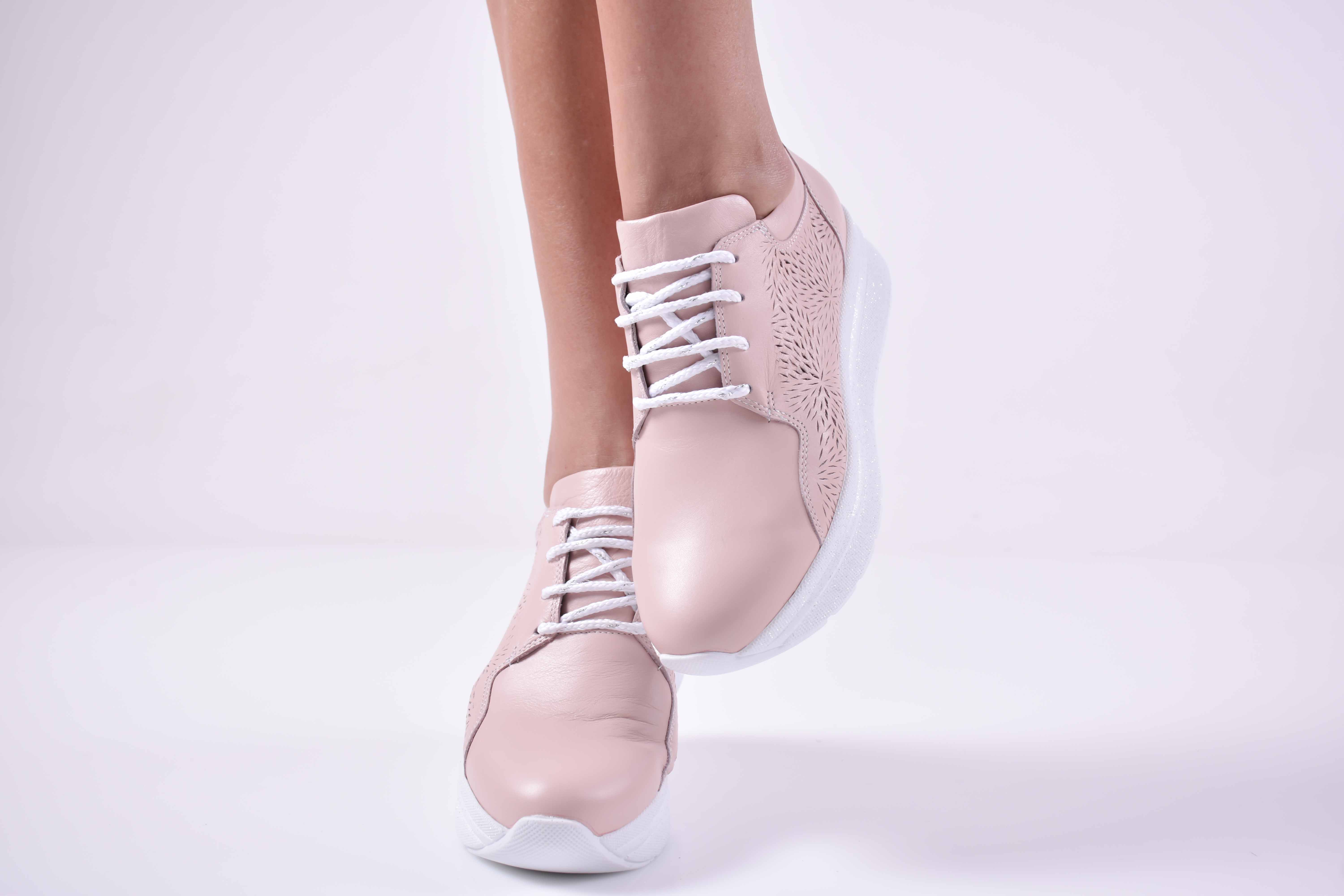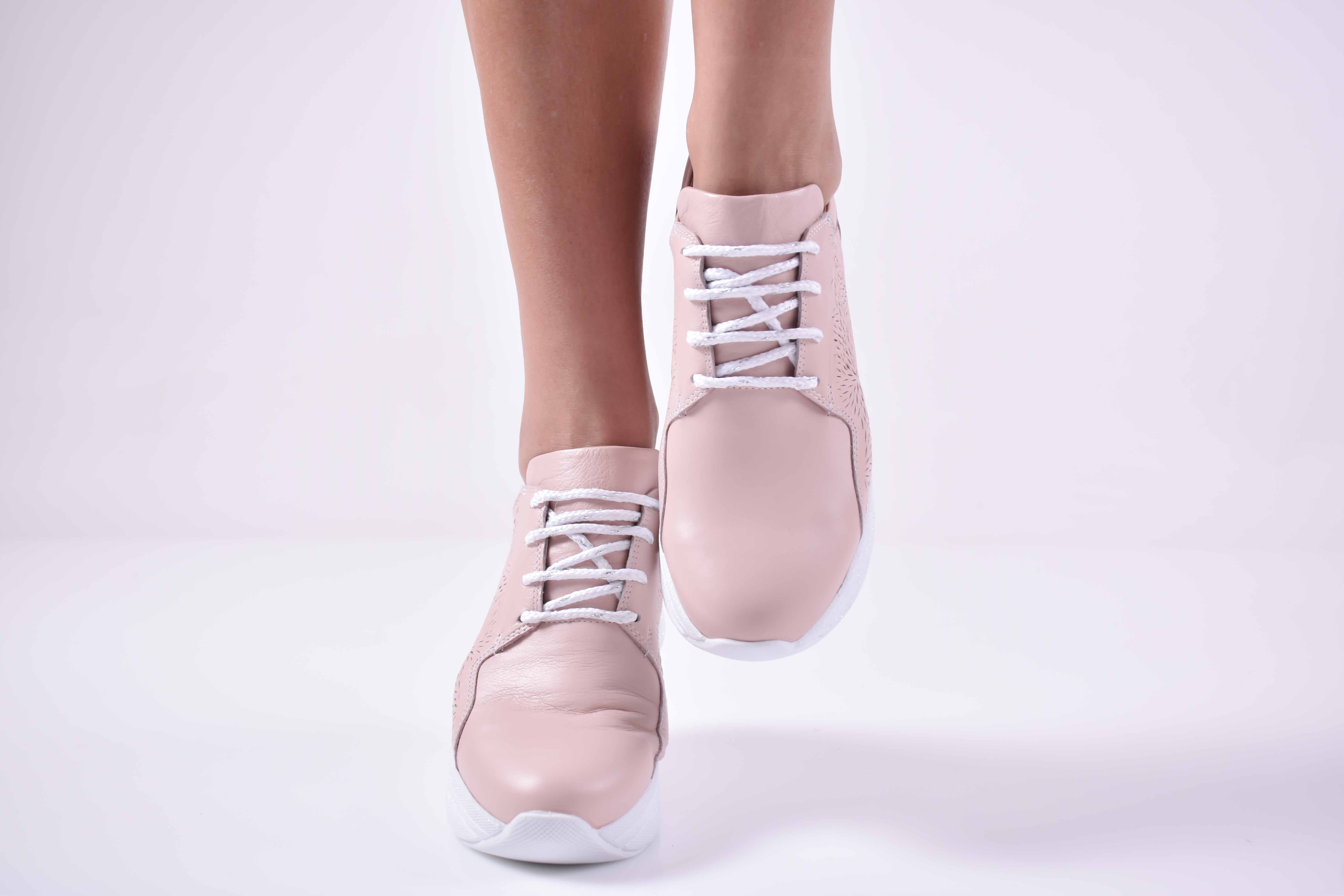 Дамски сникърси естествена кожа пудра EOBUVKIBG #501-1161
