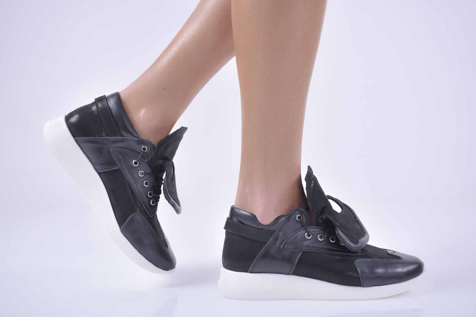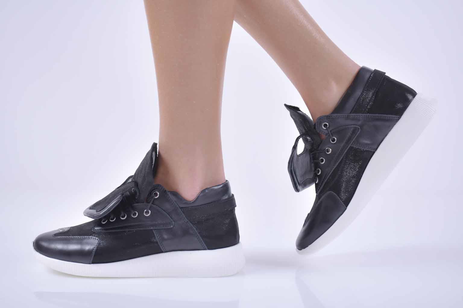 Дамски сникърси естествена кожа черни EOBUVKIBG