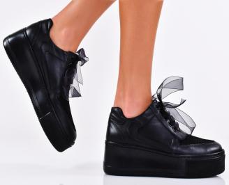 Дамски сникърси естествена кожа черни EOBUVKIBG #502-6424