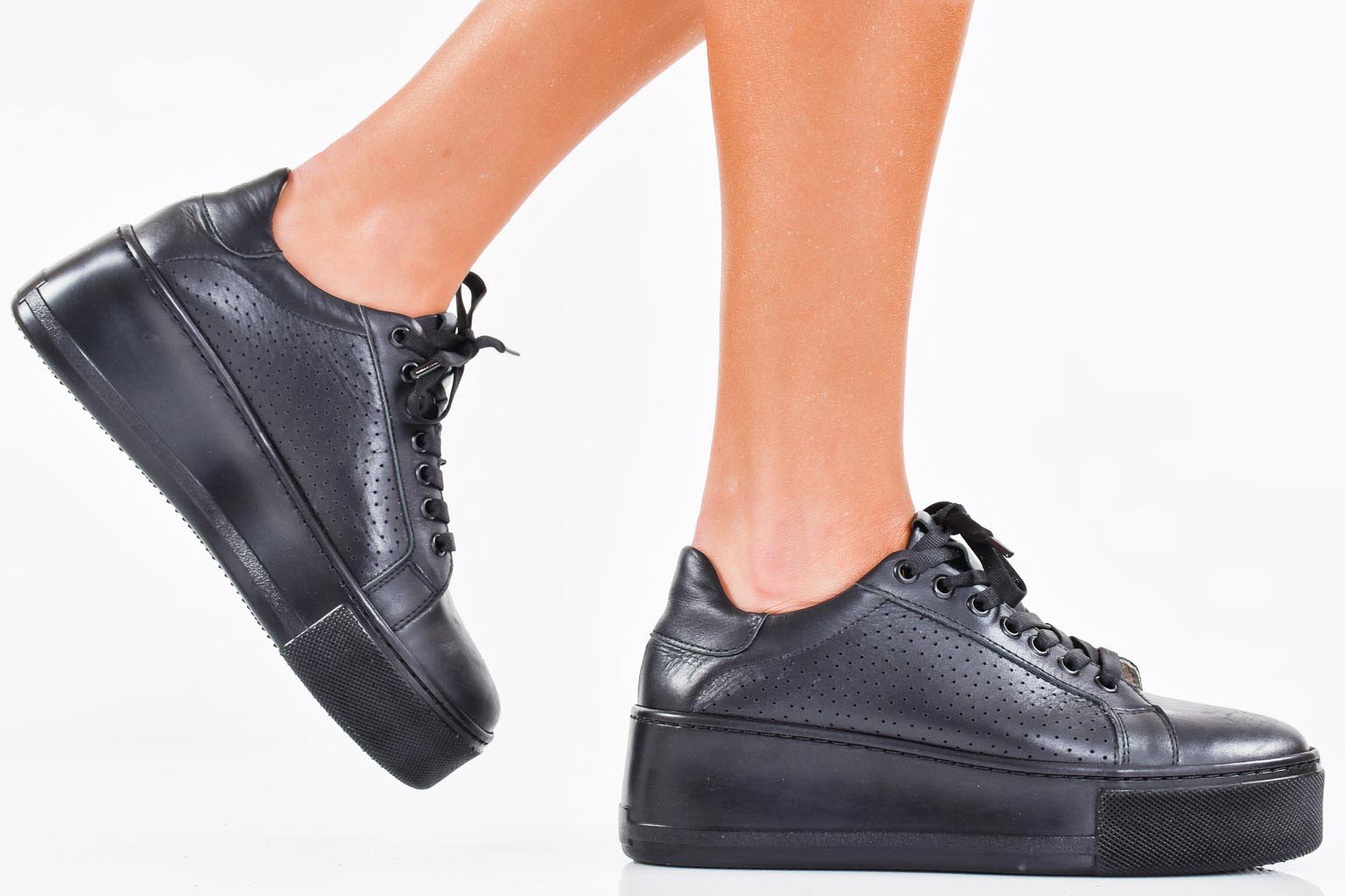 Дамски сникърси естествена кожа черни EOBUVKIBG