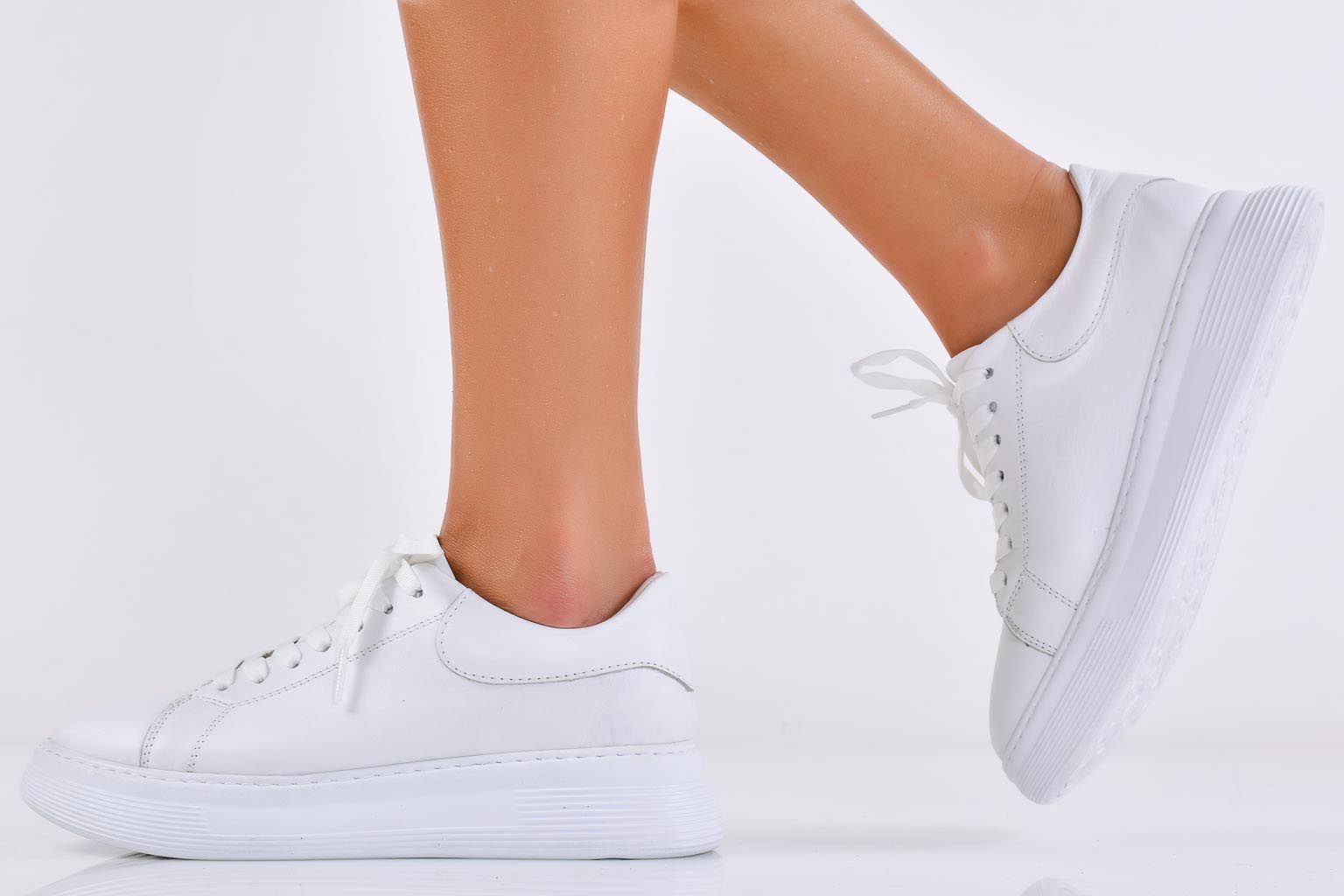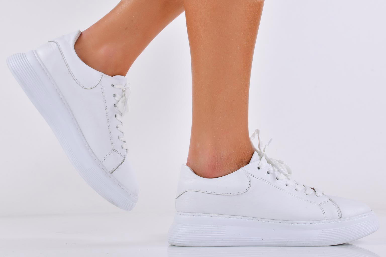 Дамски сникърси естествена кожа бели EOBUVKIBG #502-7021
