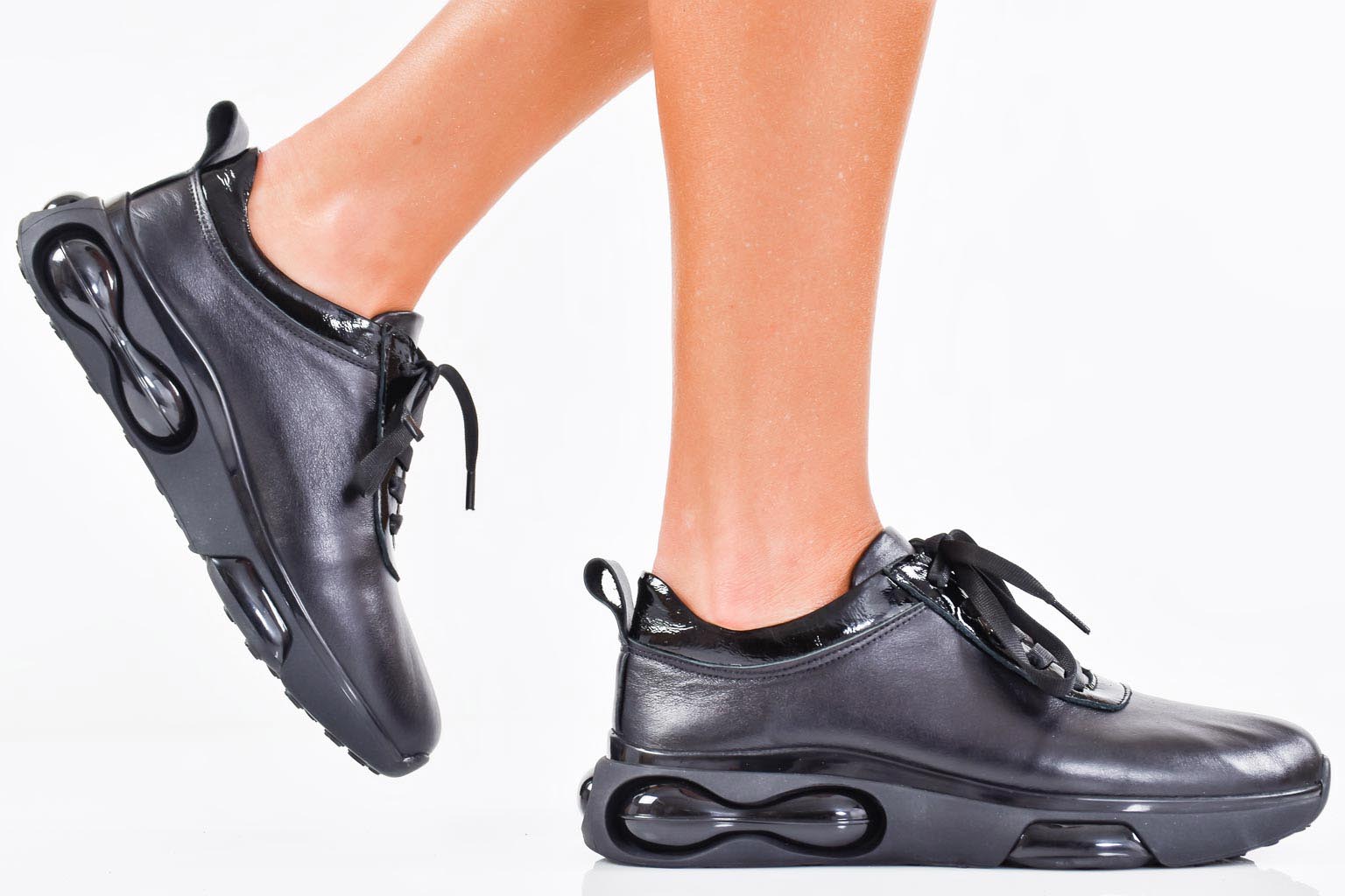 Дамски сникърси естествена кожа черни EOBUVKIBG