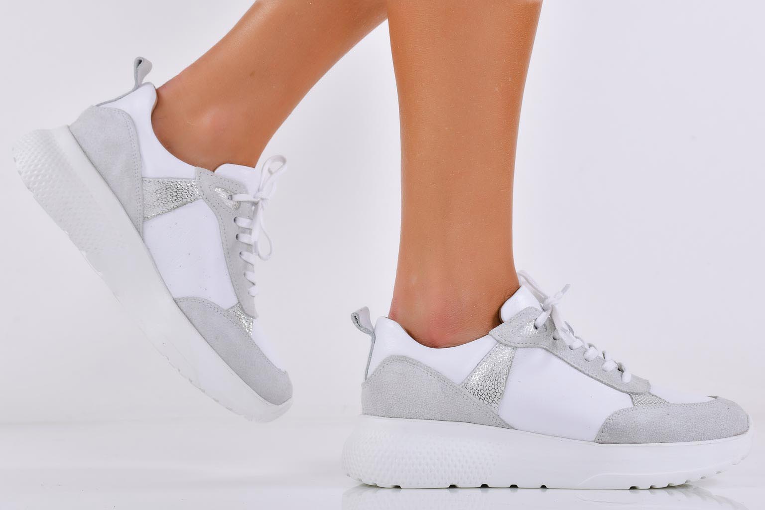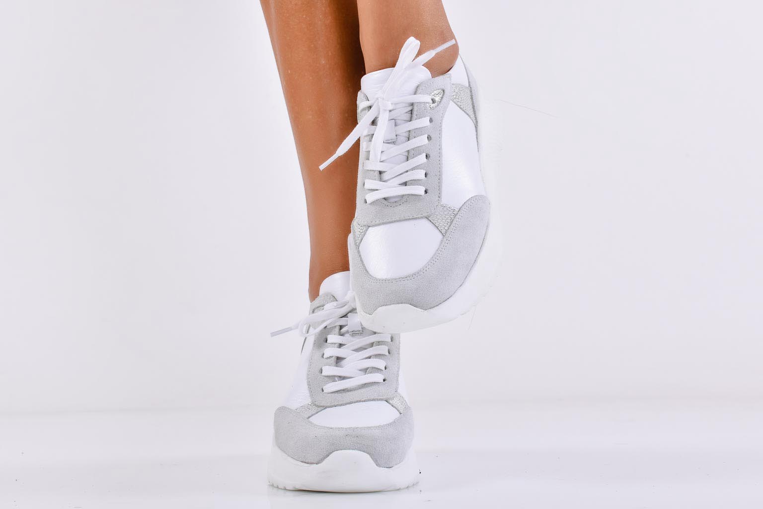 Дамски сникърси естествена кожа бели EOBUVKIBG #502-7031