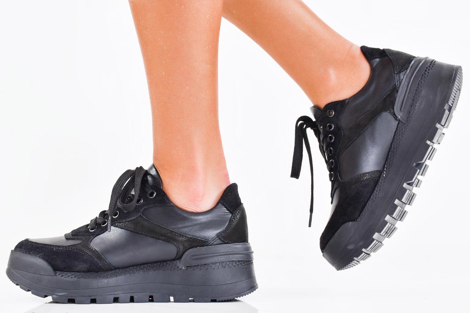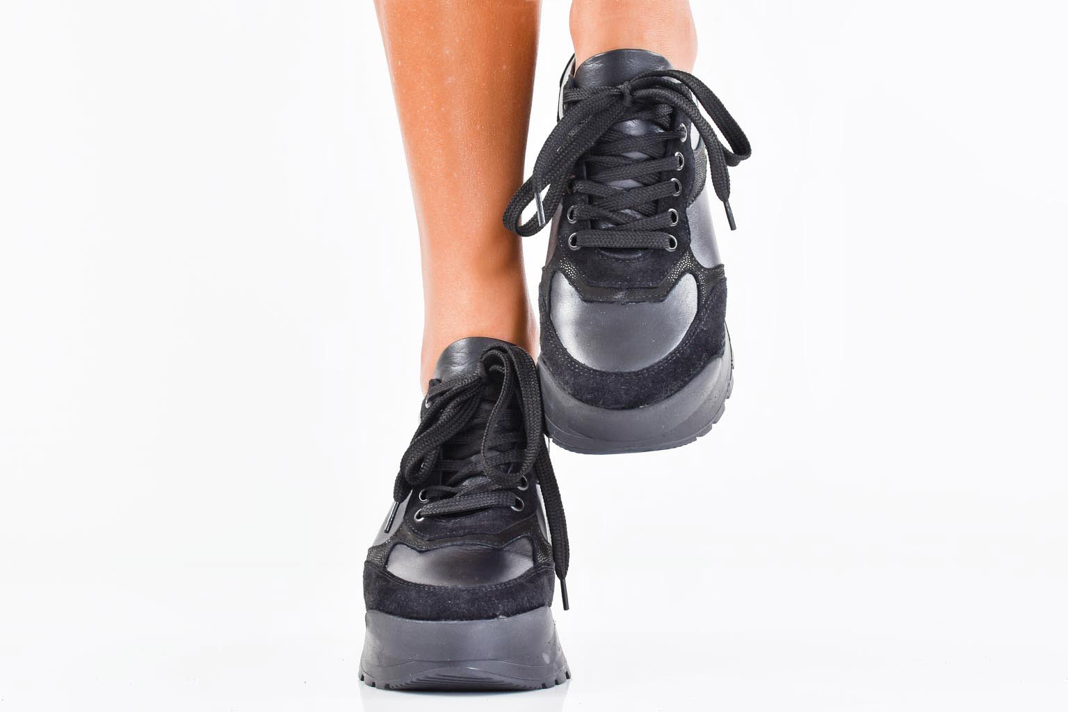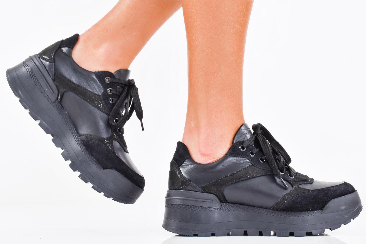 Дамски сникърси естествена кожа черни EOBUVKIBG