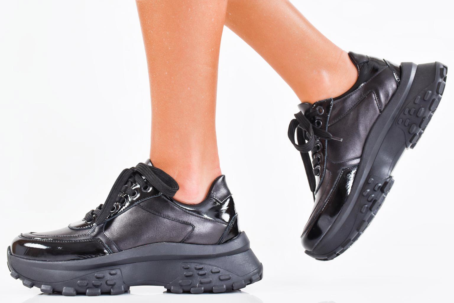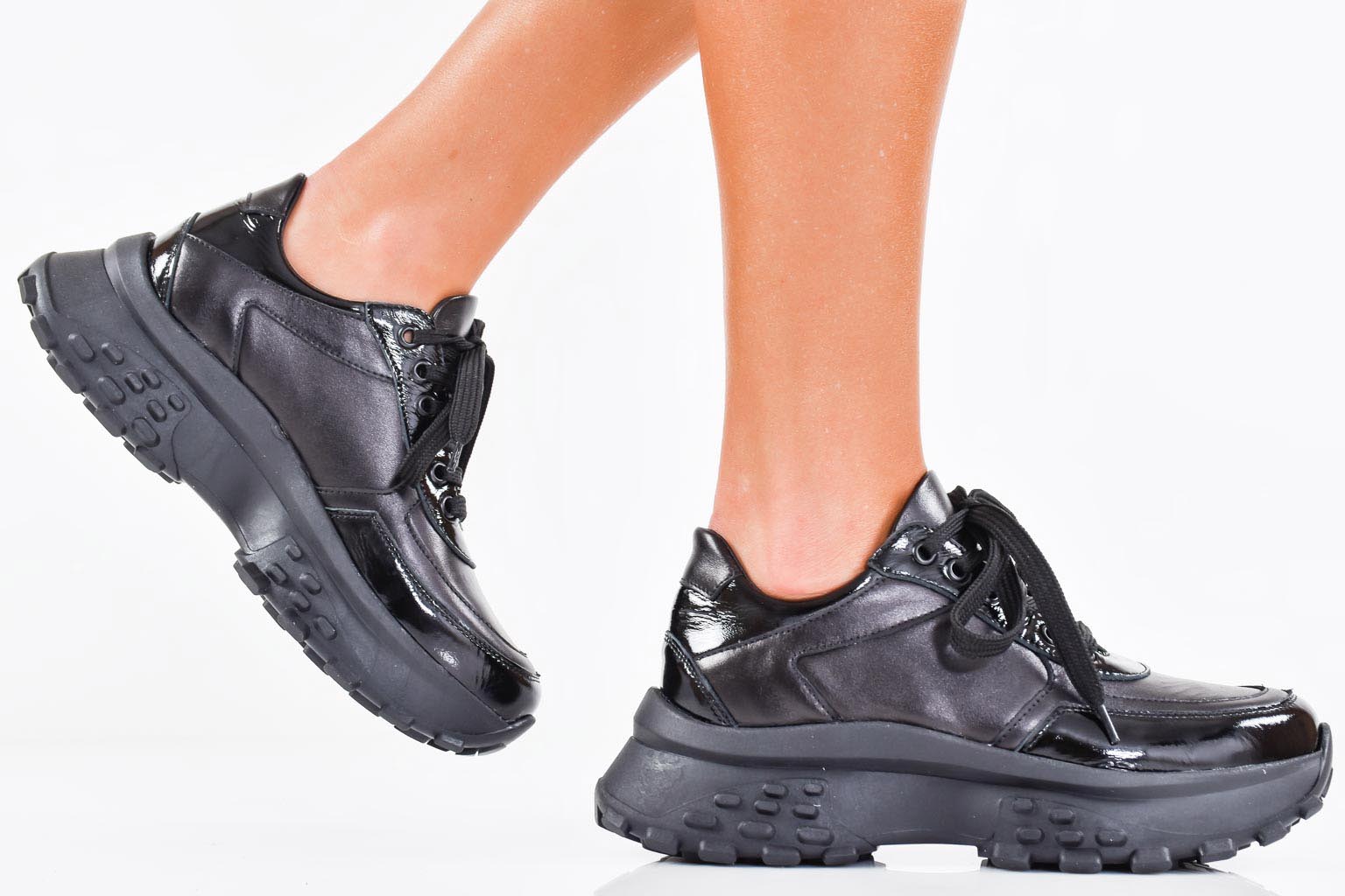 Дамски сникърси естествена кожа черни EOBUVKIBG