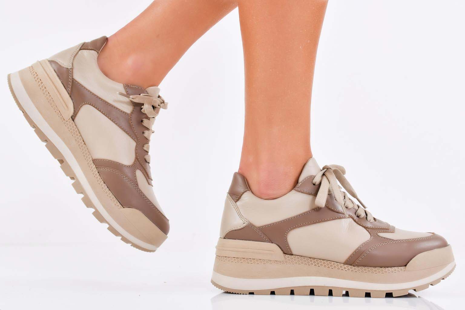 Дамски сникърси естествена кожа бежови EOBUVKIBG