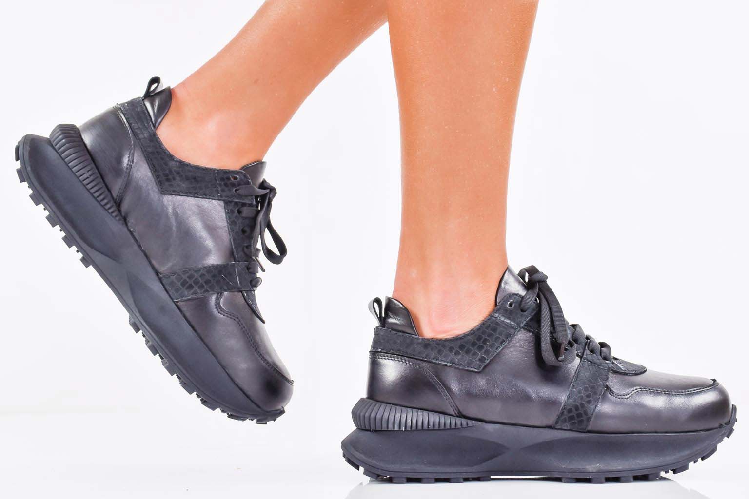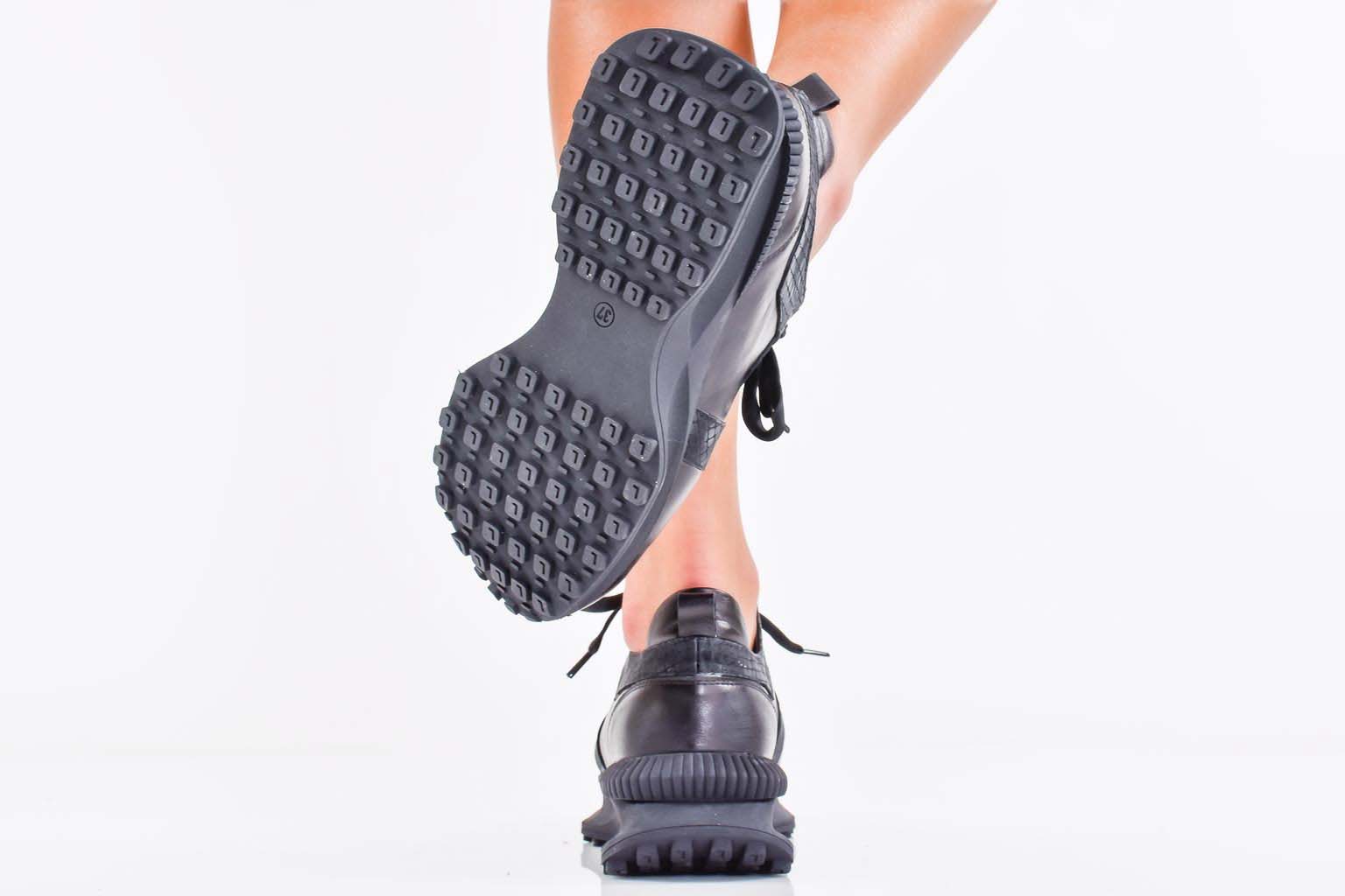 Дамски сникърси естествена кожа черни EOBUVKIBG