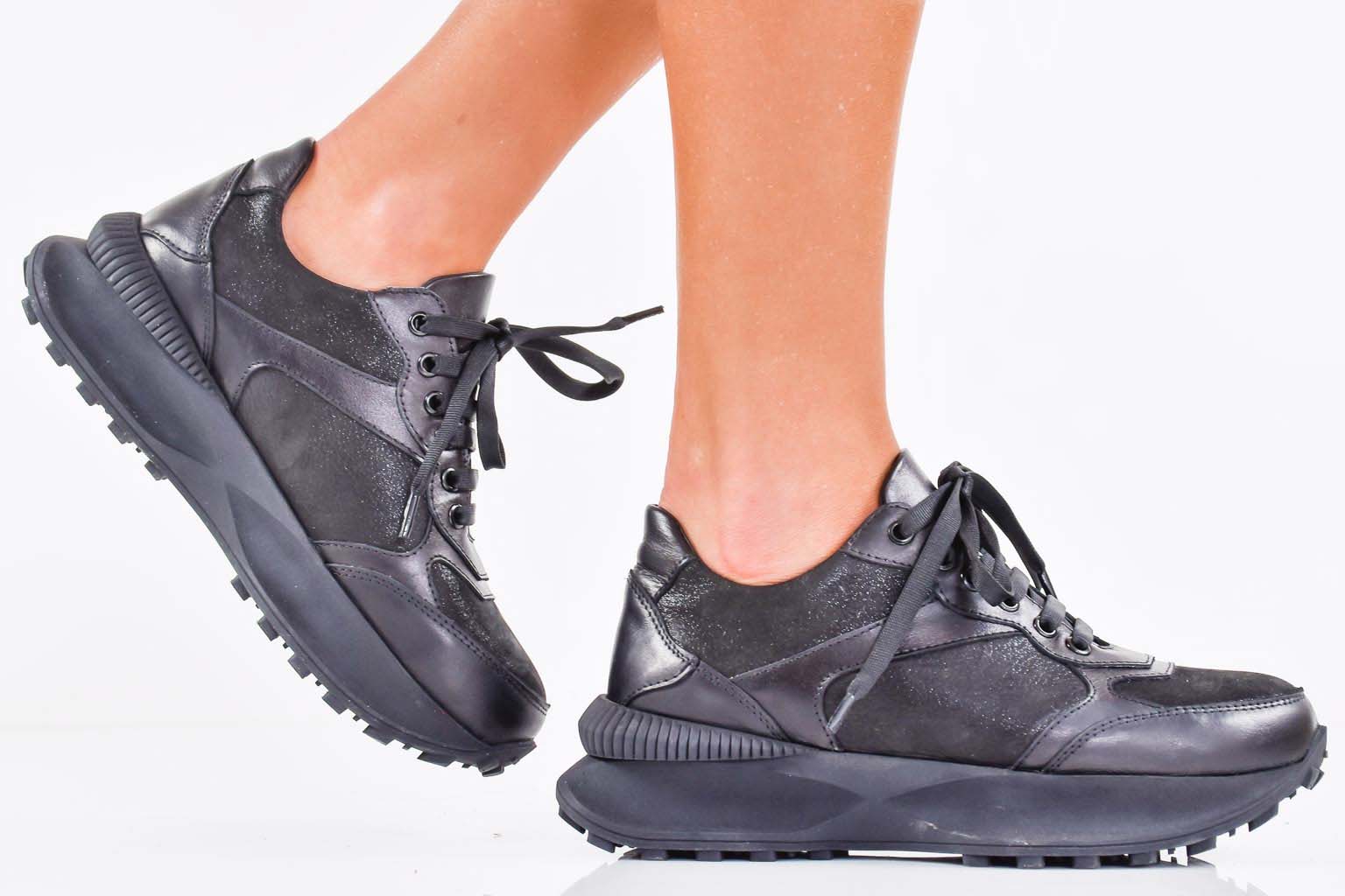 Дамски сникърси естествена кожа  черни EOBUVKIBG