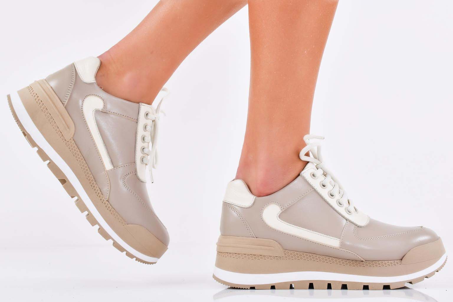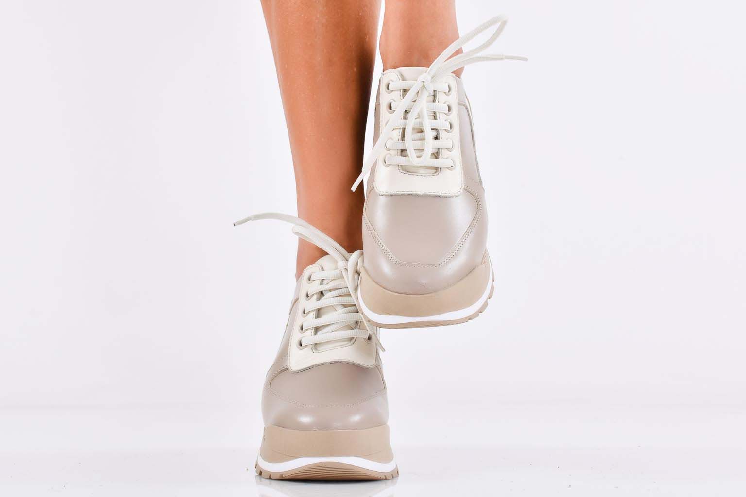 Дамски сникърси естествена кожа бежови EOBUVKIBG