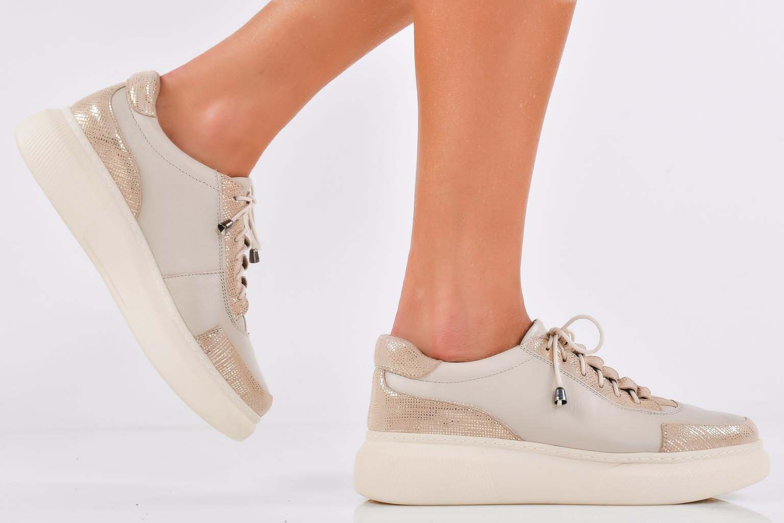 Дамски сникърси естествена кожа бежови EOBUVKIBG