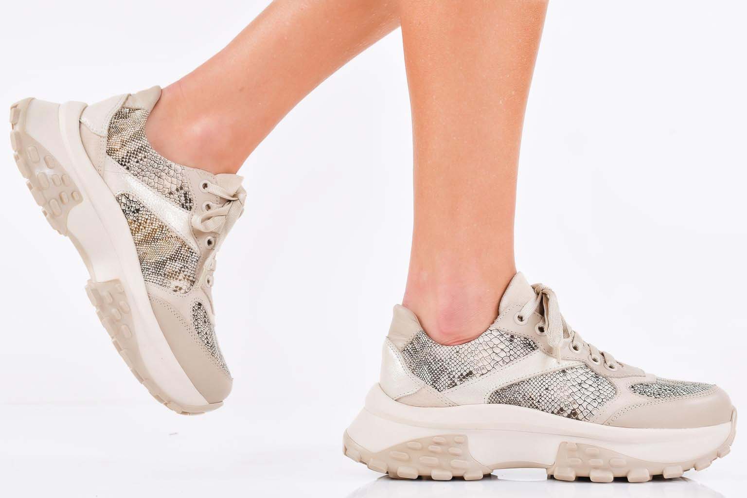 Дамски сникърси естествена кожа бежови EOBUVKIBG