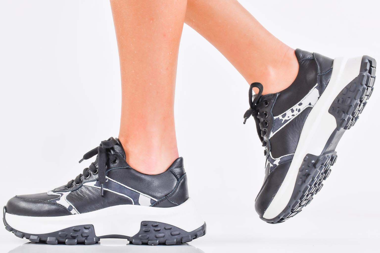 Дамски сникърси естествена кожа черни EOBUVKIBG #502-7421