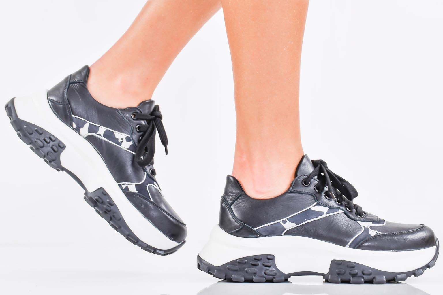 Дамски сникърси естествена кожа черни EOBUVKIBG