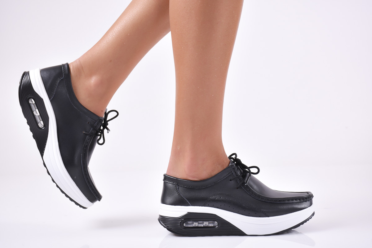 Дамски ежедневни обувки естествена кожа черни EOBUVKIBG #501-0332