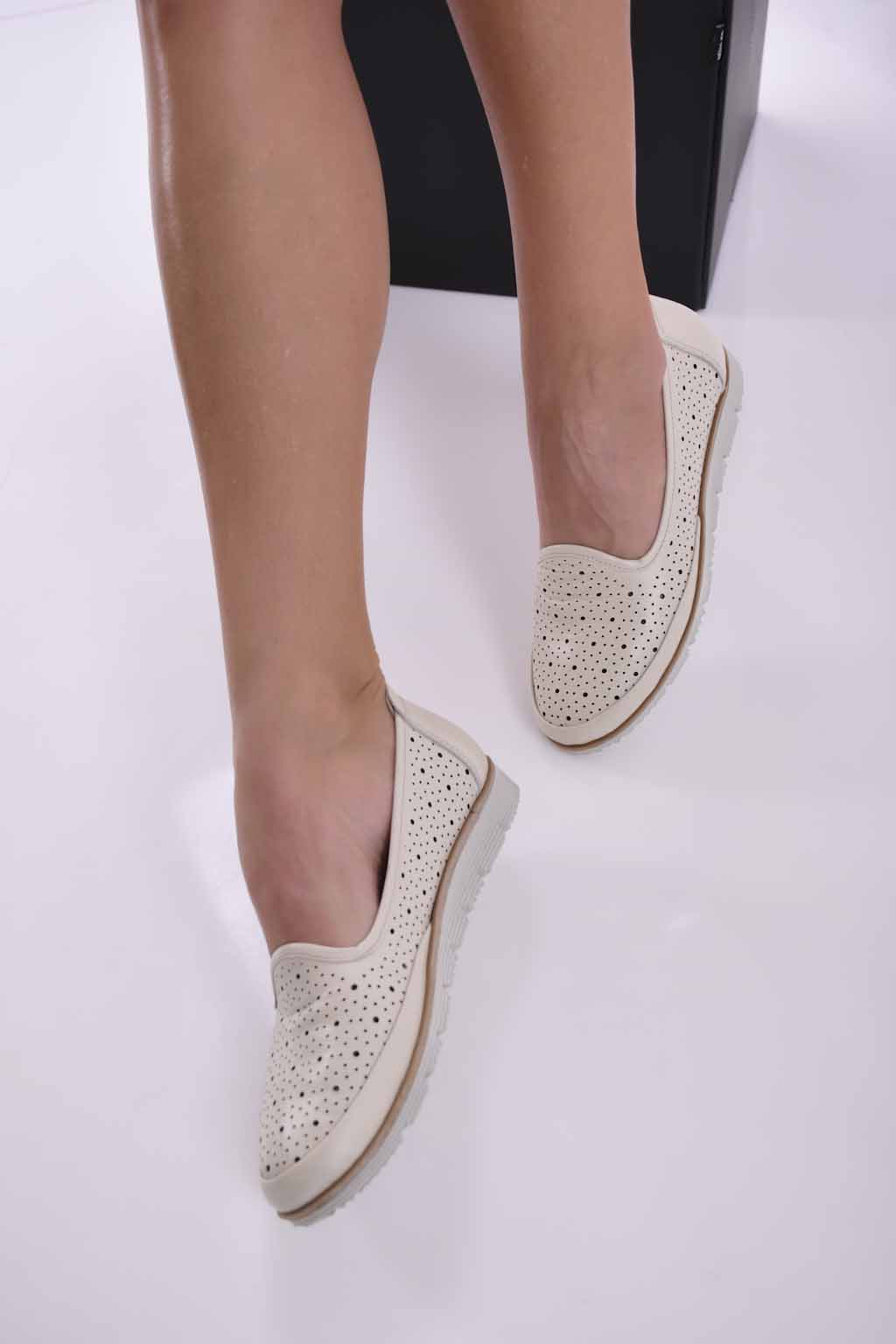 Дамски обувки равни естествена кожа бежови EOBUVKIBG #501-2638