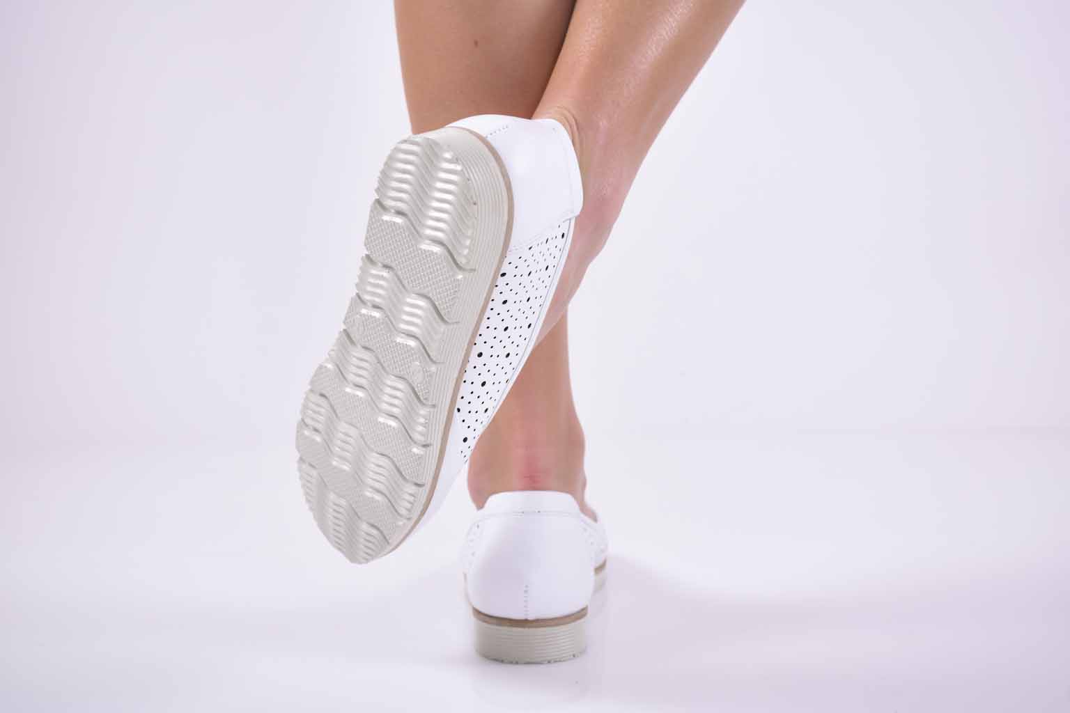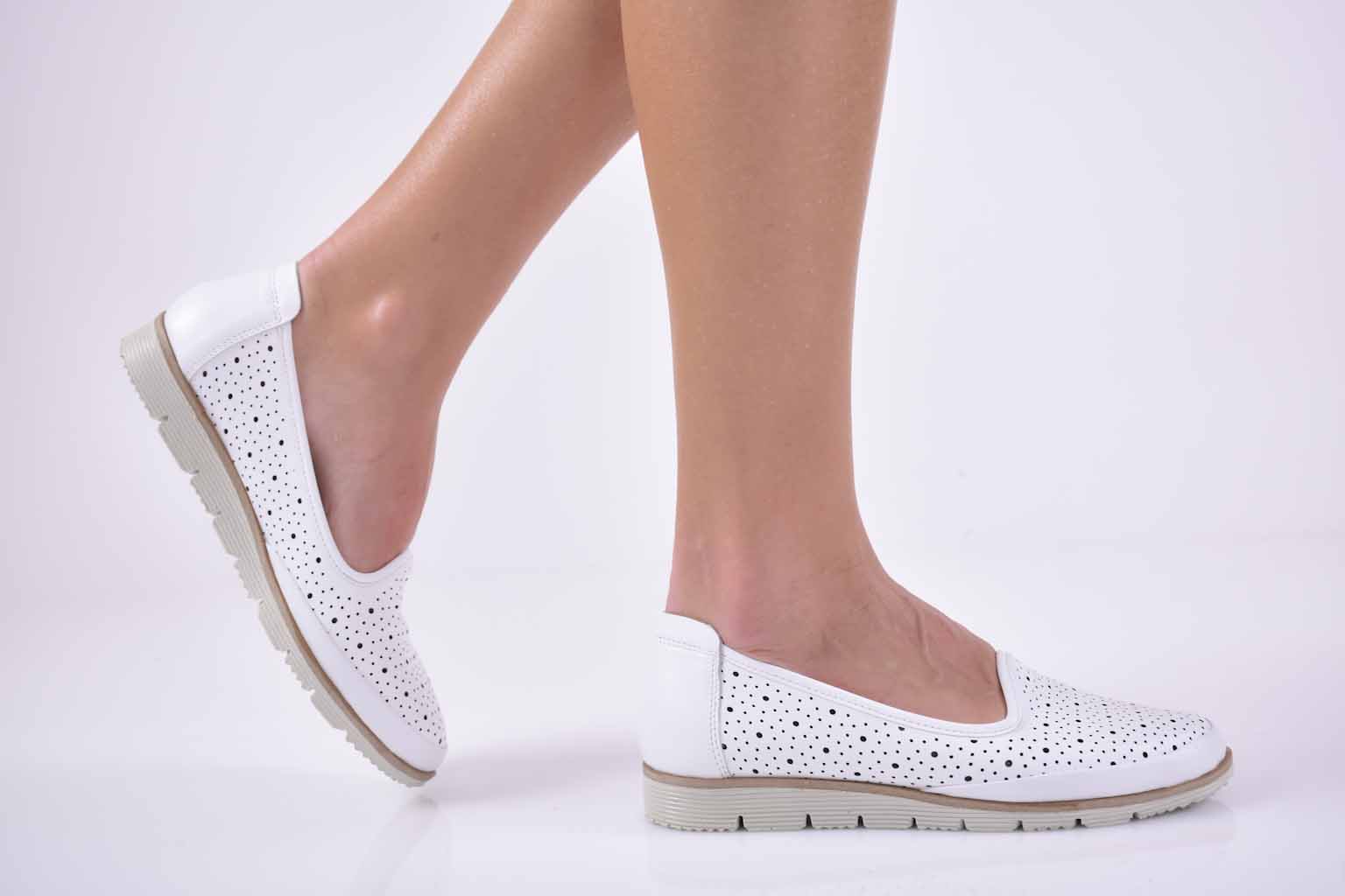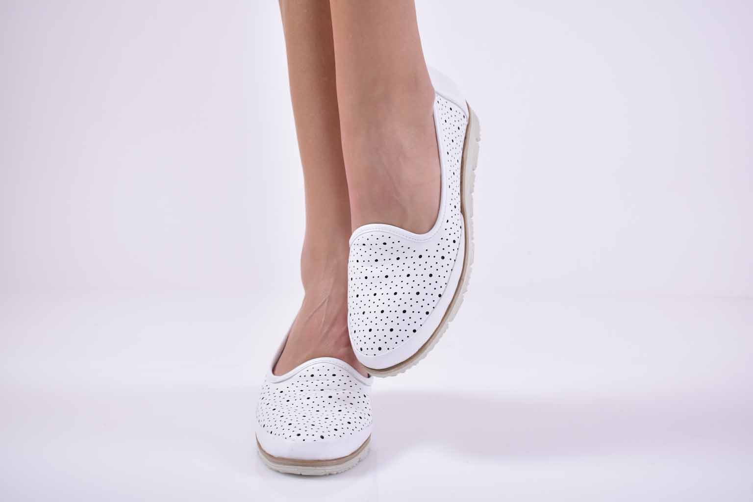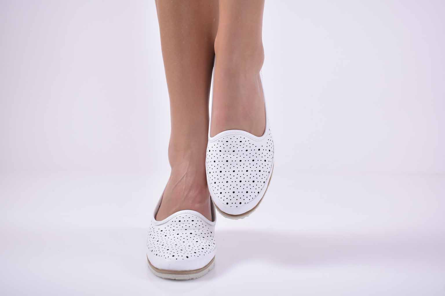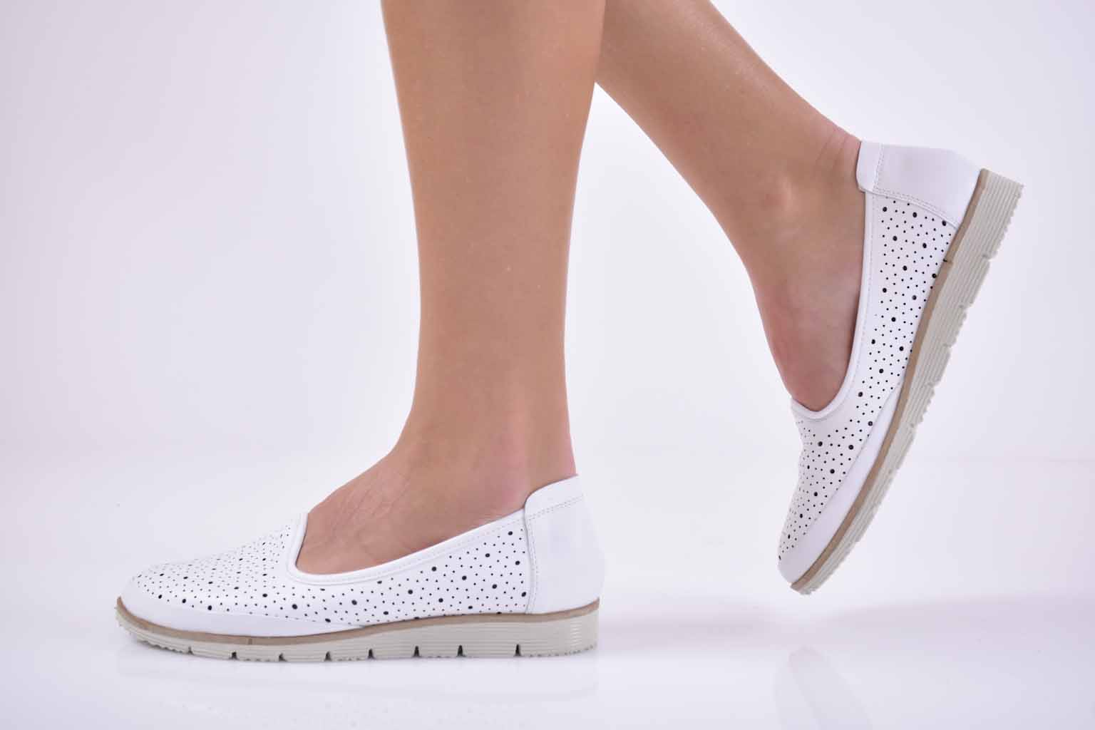 Дамски обувки равни естествена кожа бели EOBUVKIBG #501-2636