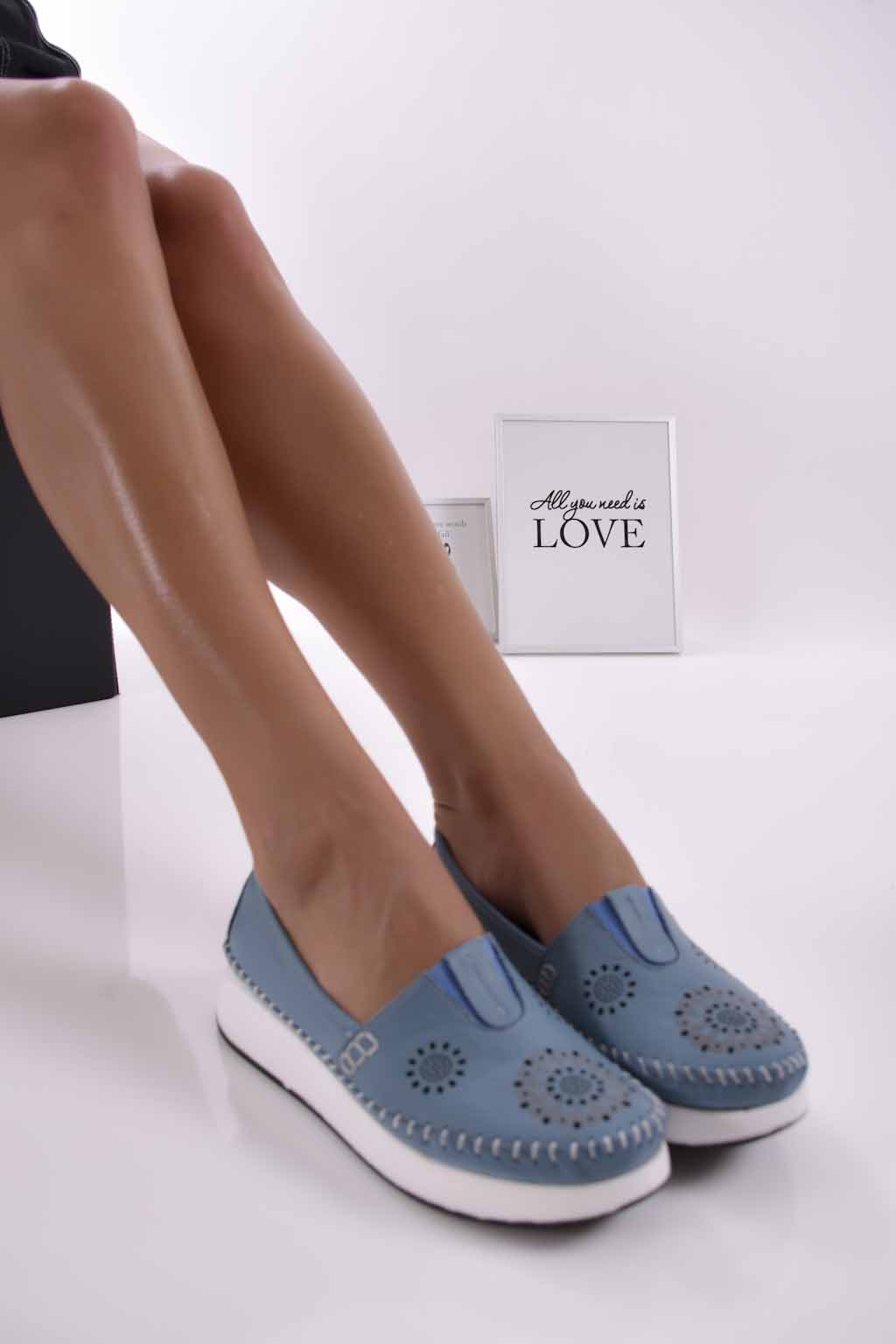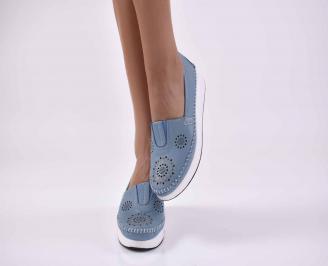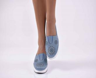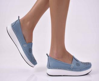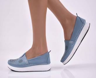 Дамски обувки равни естествена кожа сини EOBUVKIBG