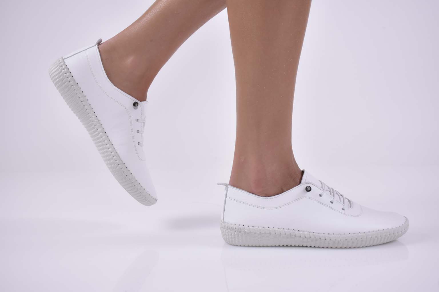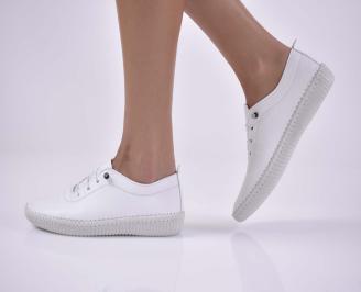 Дамски равни обувки естествена кожа бели EOBUVKIBG #502-2442