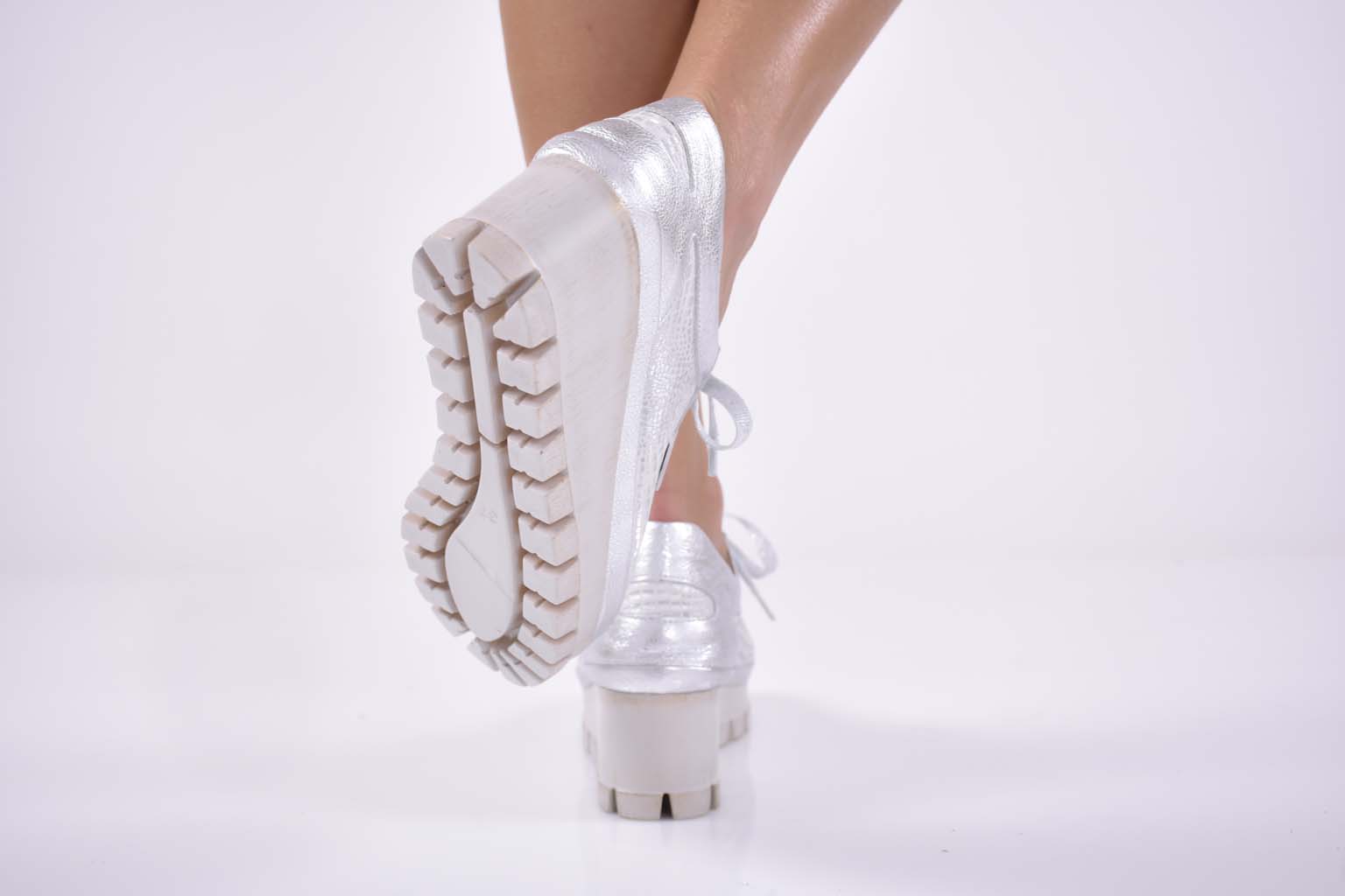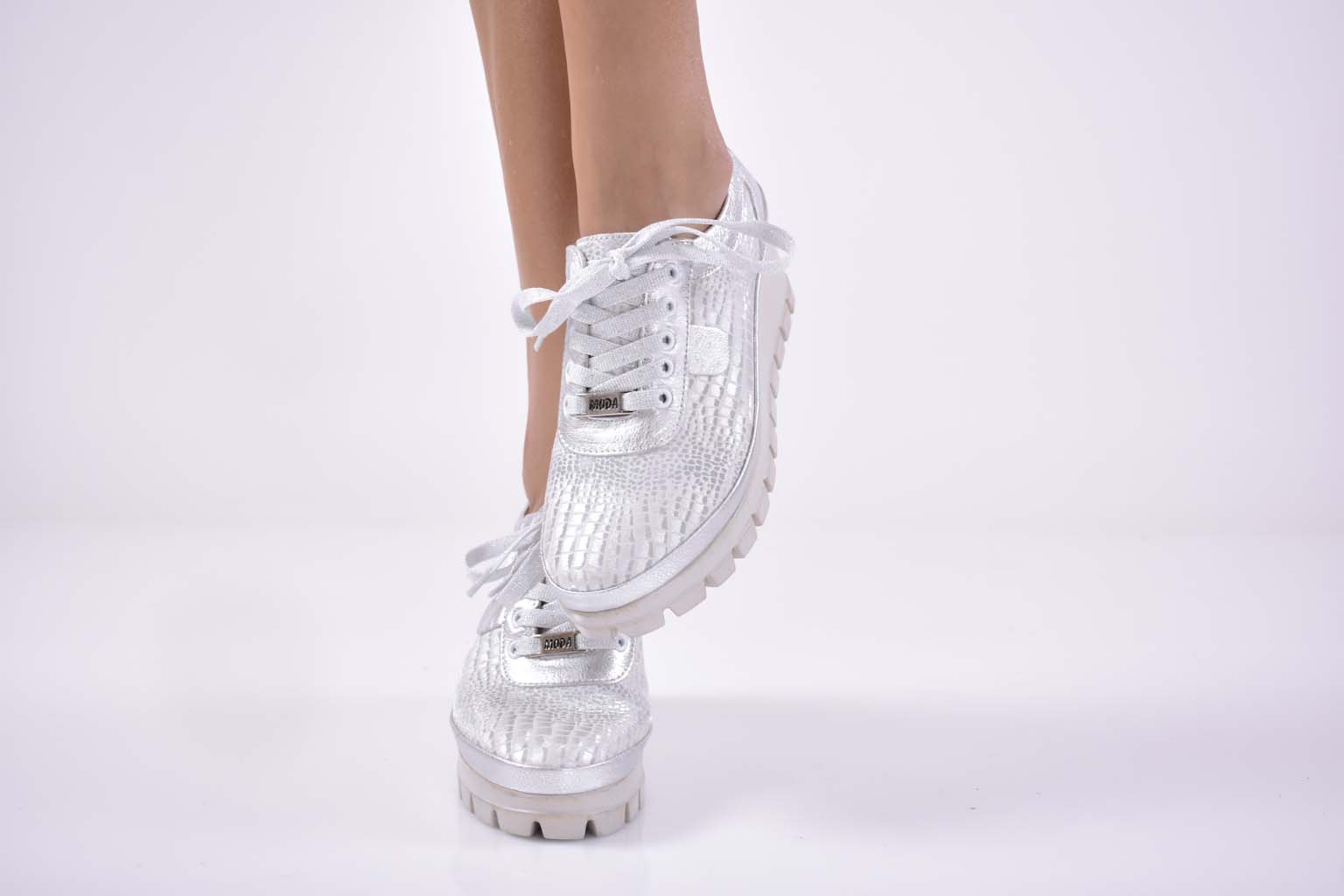 Дамски обувки на естествена кожа сребристи EOBUVKIBG #502-4000