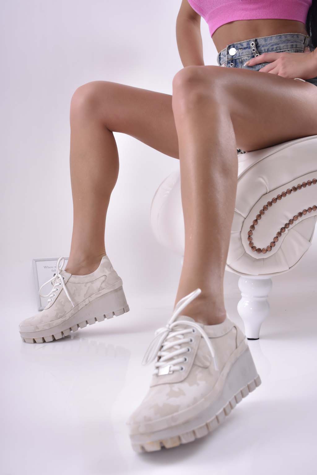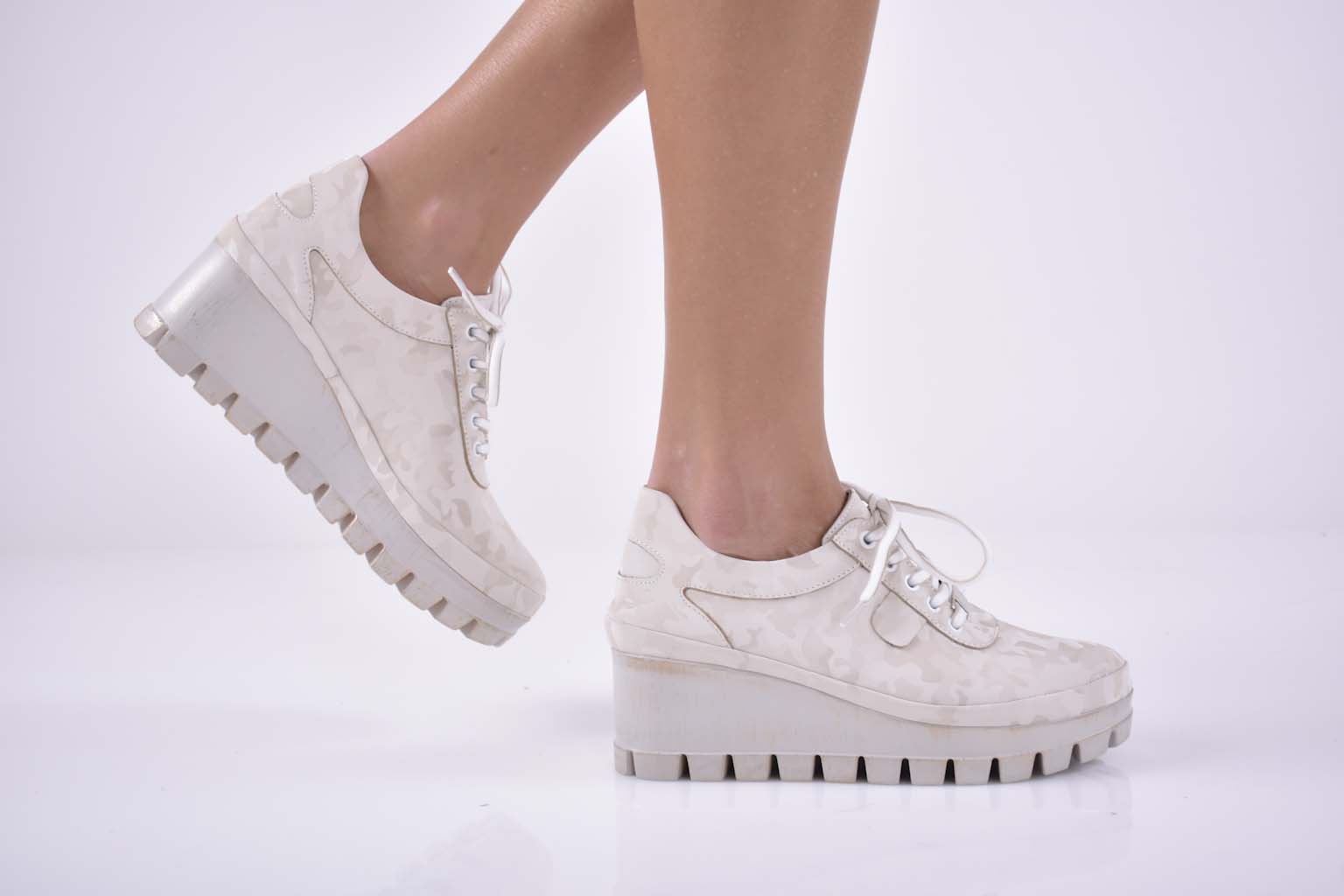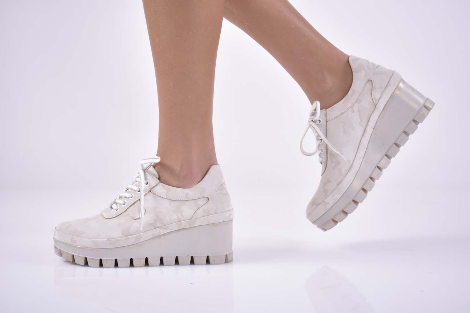 Дамски обувки на платформа естествена кожа бели EOBUVKIBG #502-3991