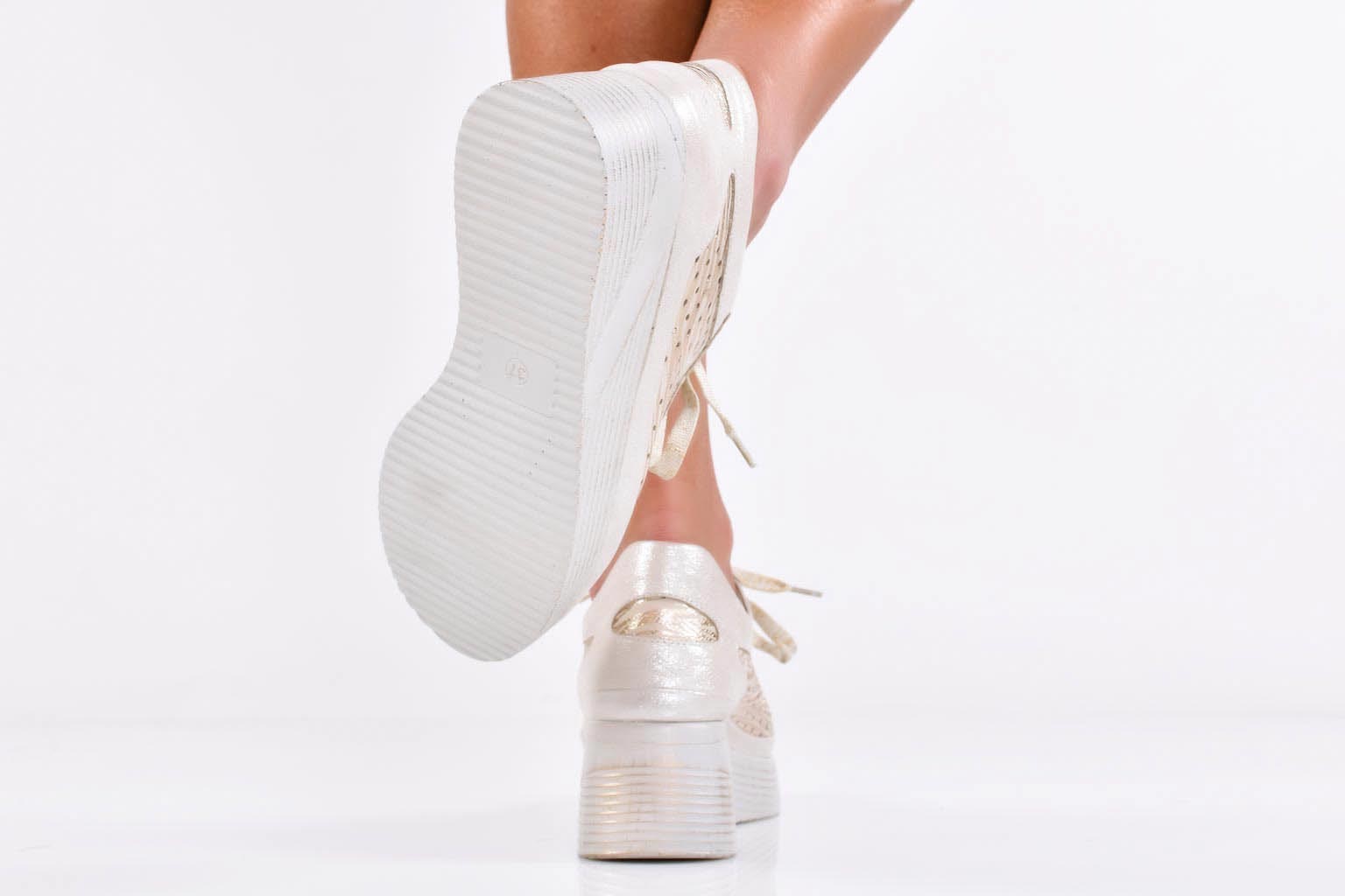 Дамски обувки на платформа естествена кожа бели EOBUVKIBG