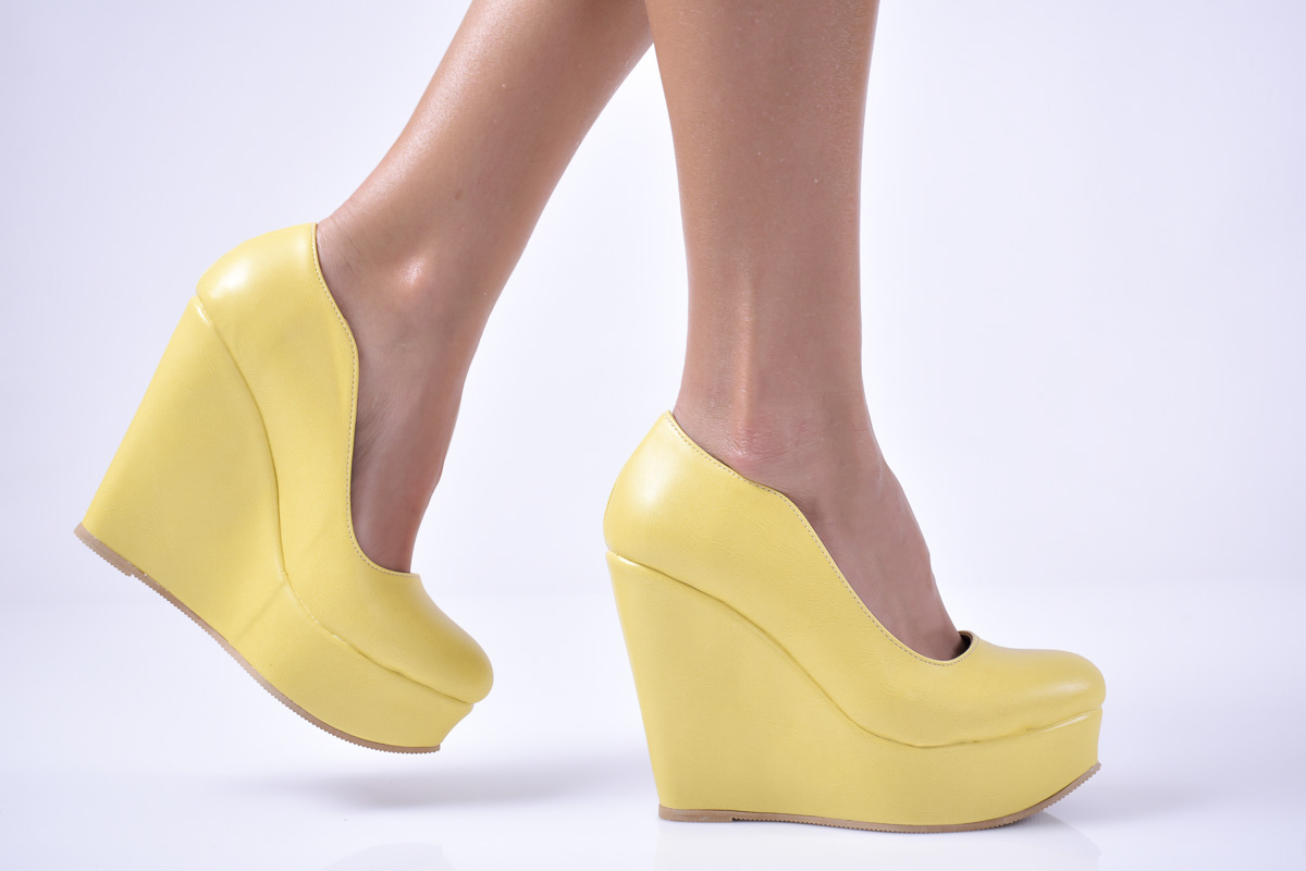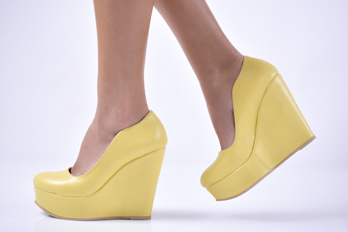 Дамски обувки на платформа жълти EOBUVKIBG #500-9729