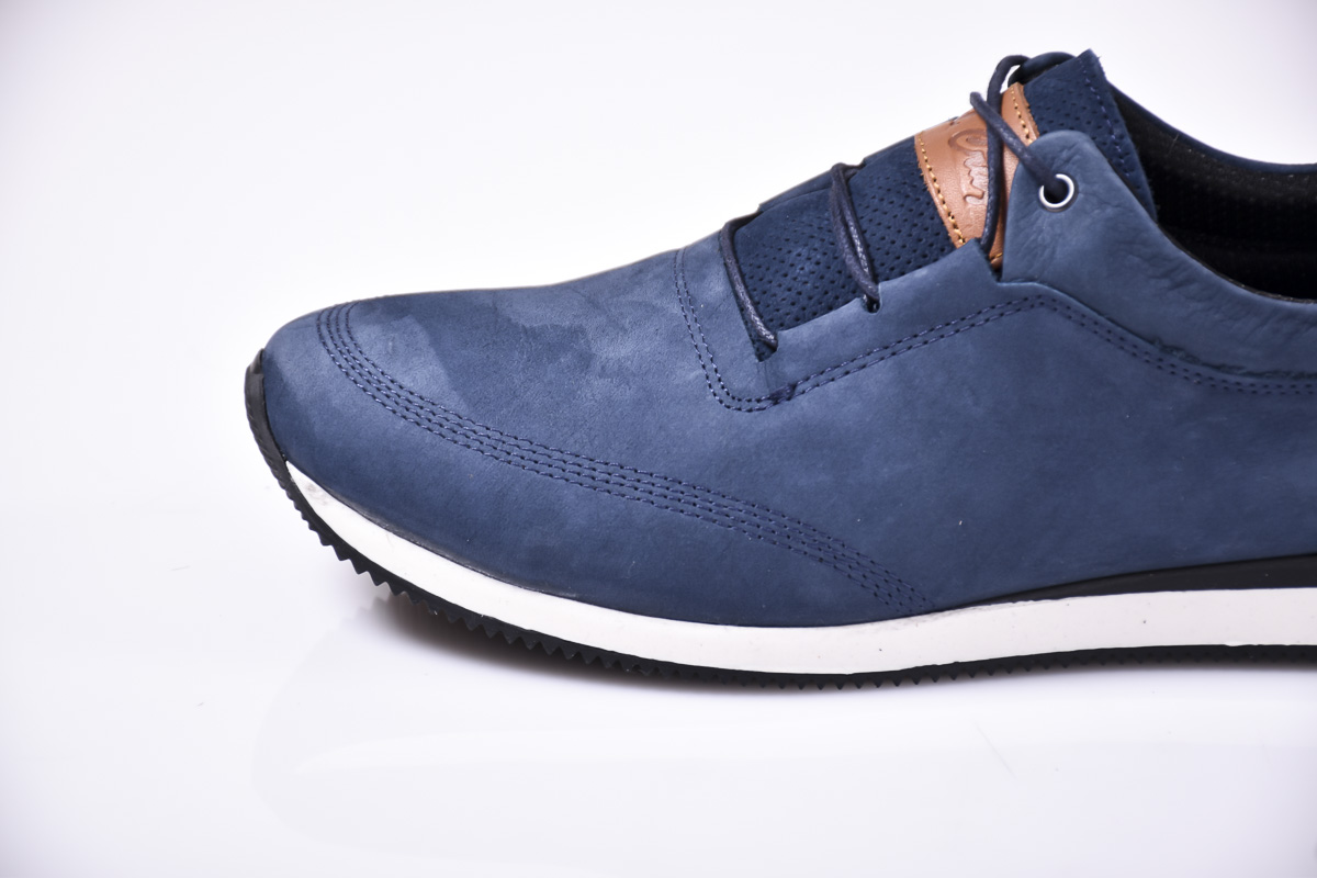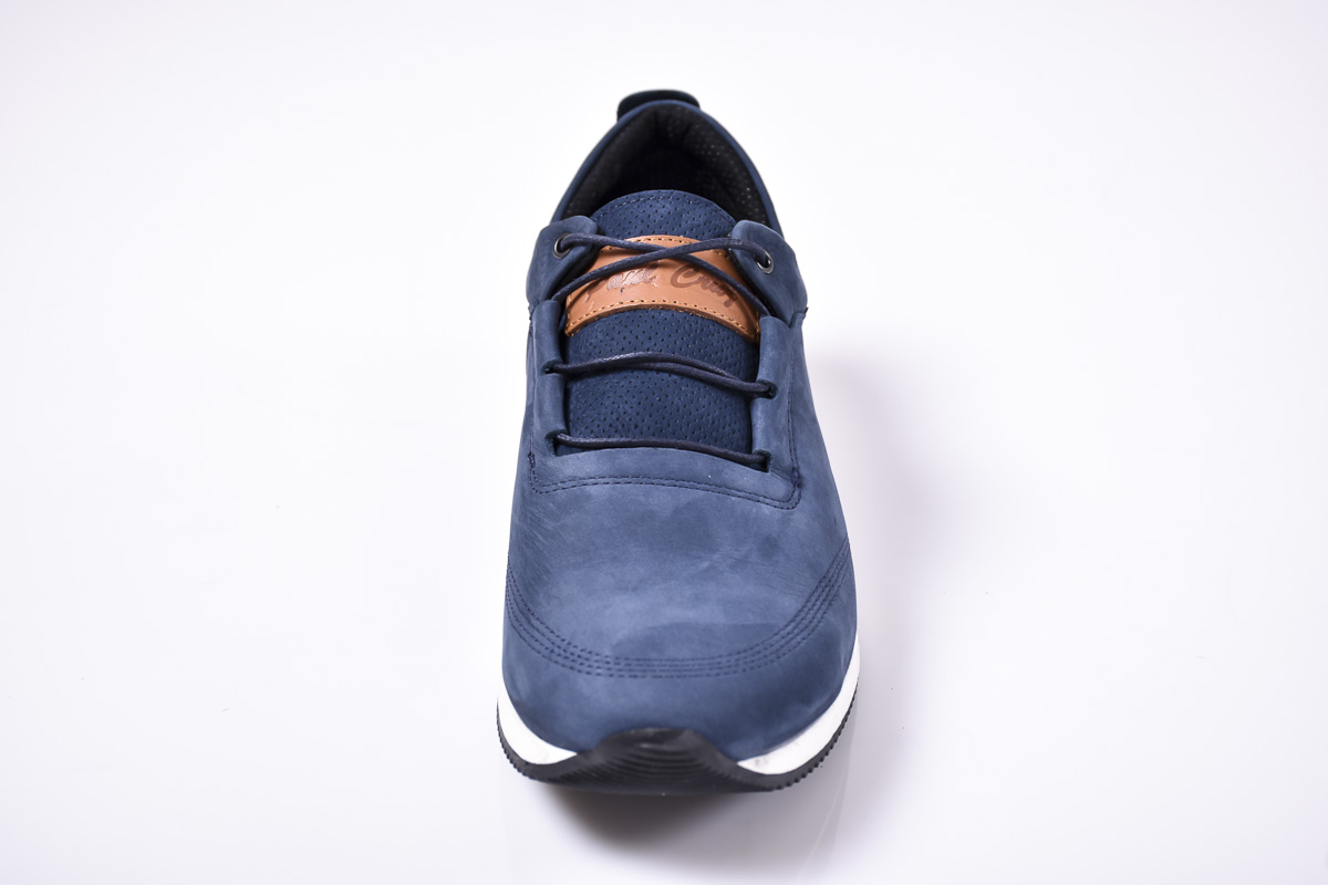 Мъжки спортно елегантни обувки естествена кожа сини #500-6786