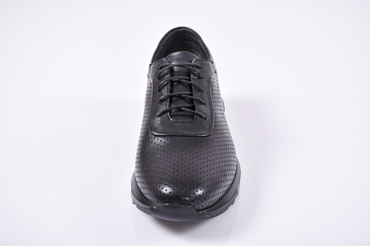 Мъжки спортно елегантни обувки естествена кожа черни #500-6923