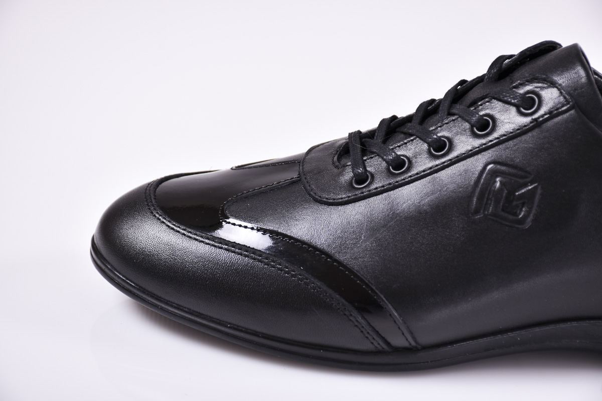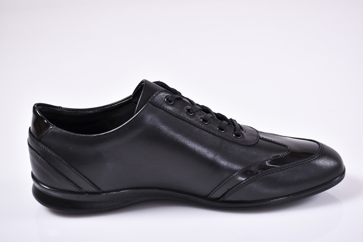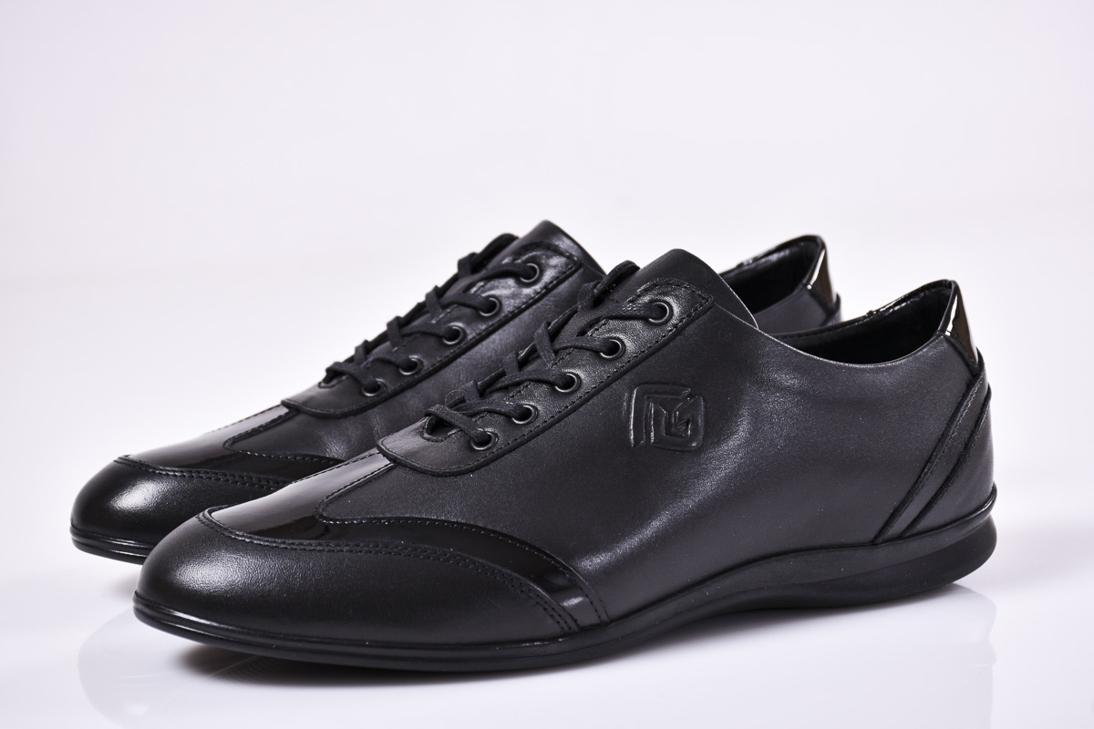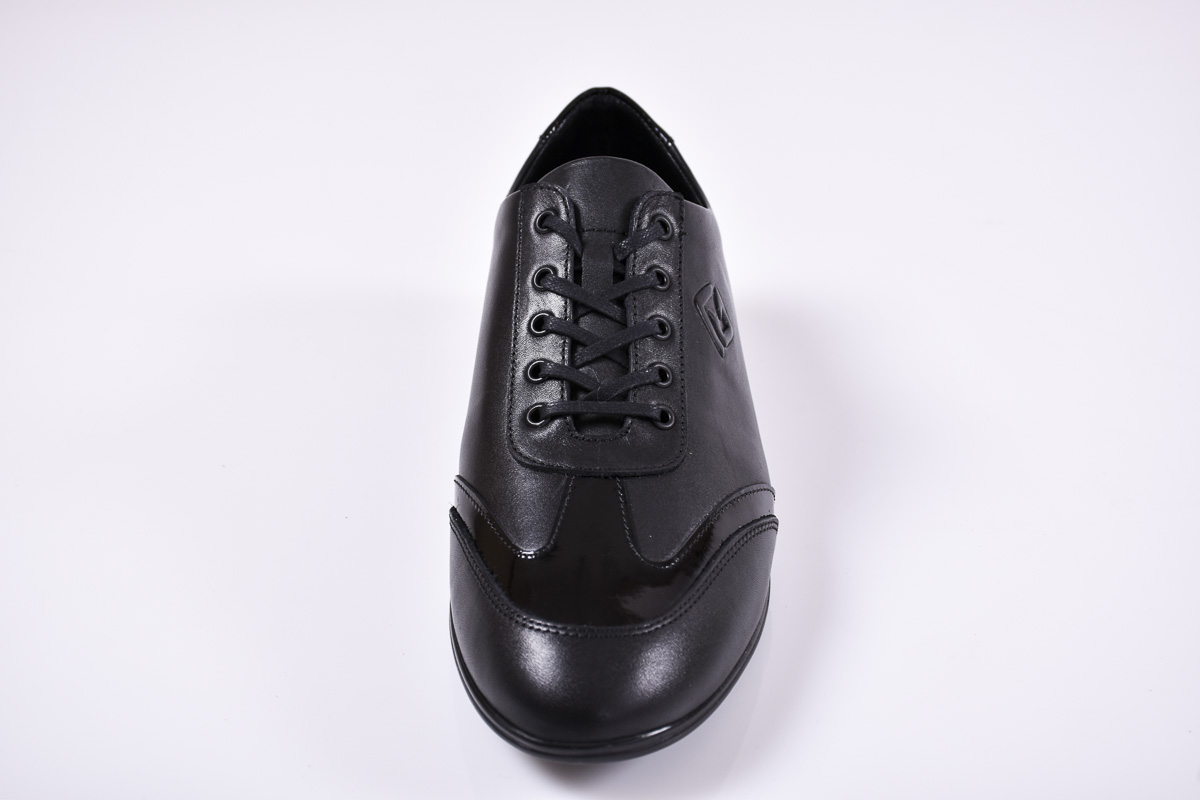 Мъжки спортно елегантни обувки естествена кожа черни #500-6986