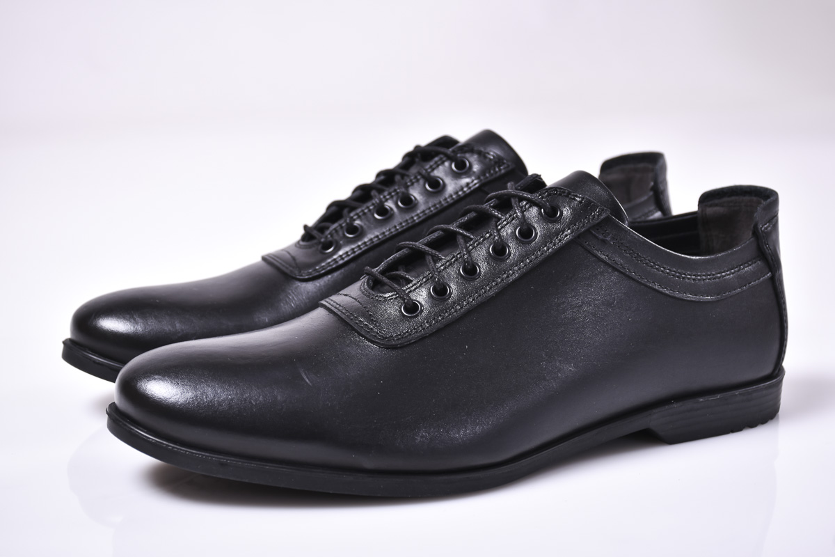 Мъжки спортно елегантни обувки естествена кожа черни #500-9503