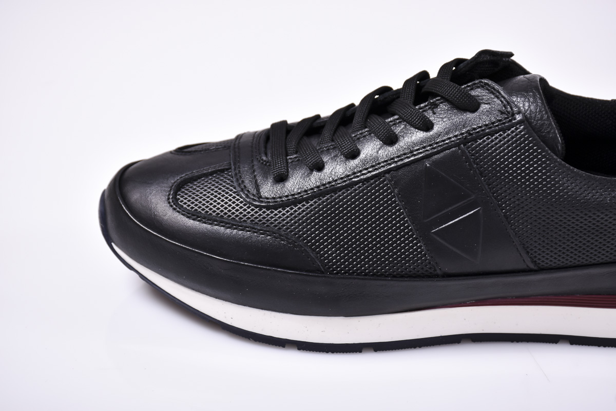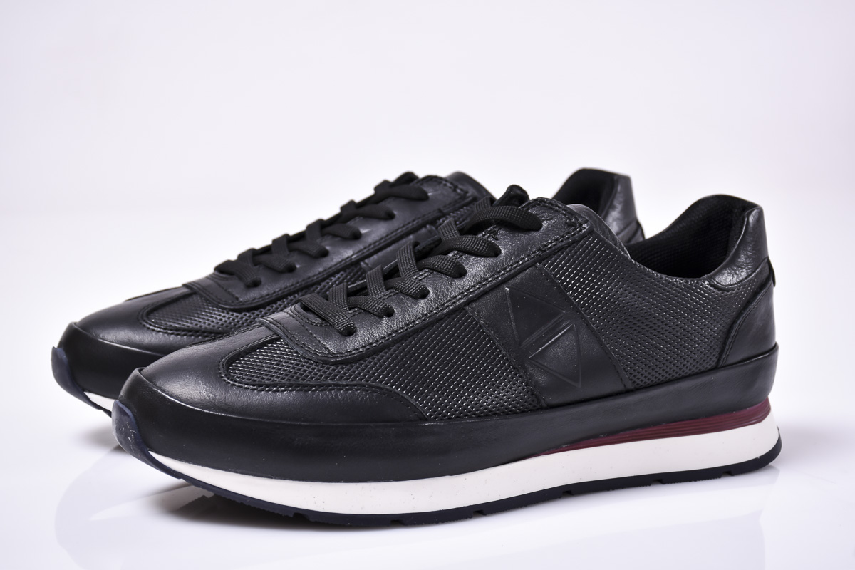 Мъжки спортно елегантни обувки естествена кожа черни #500-9791