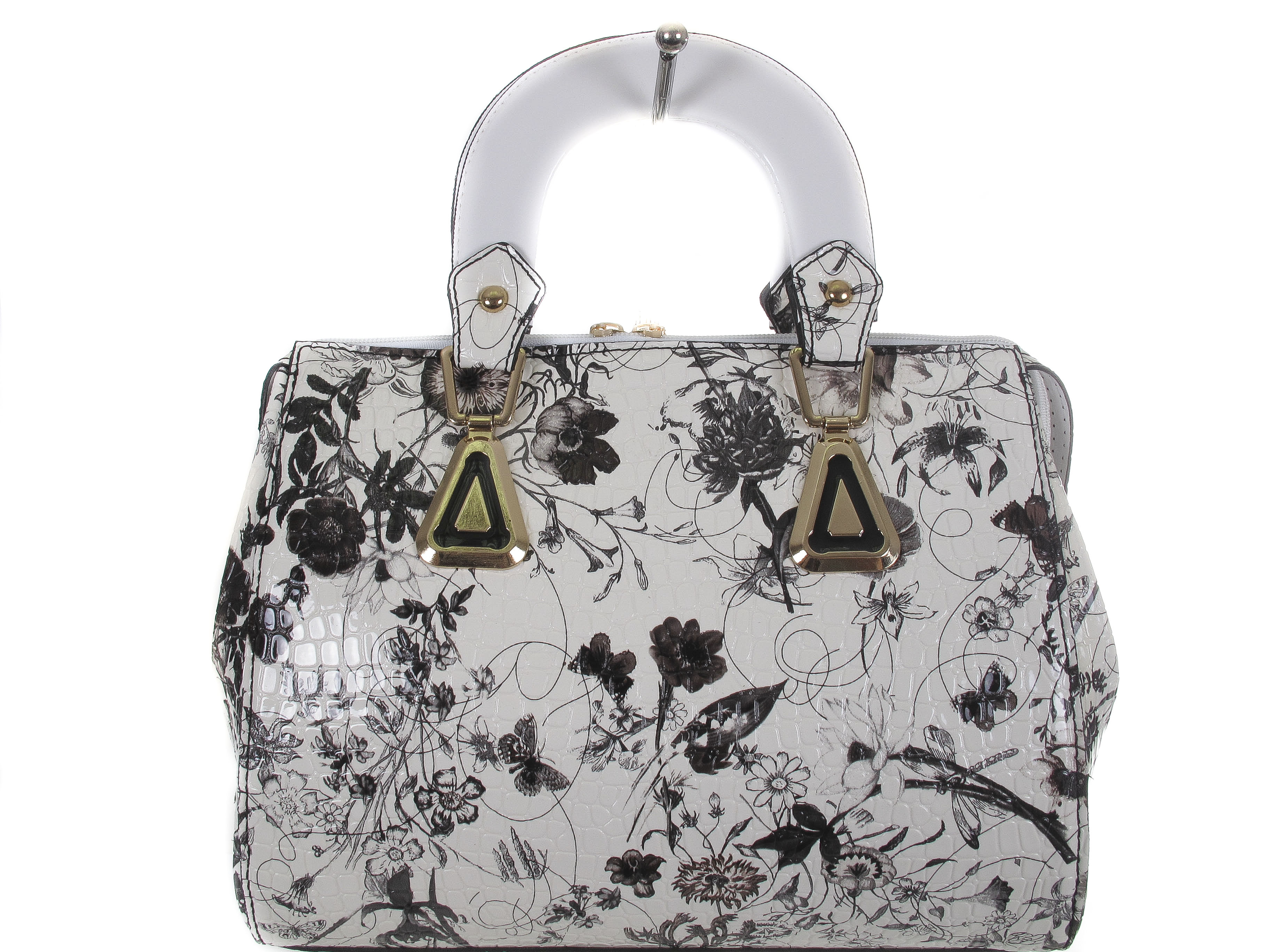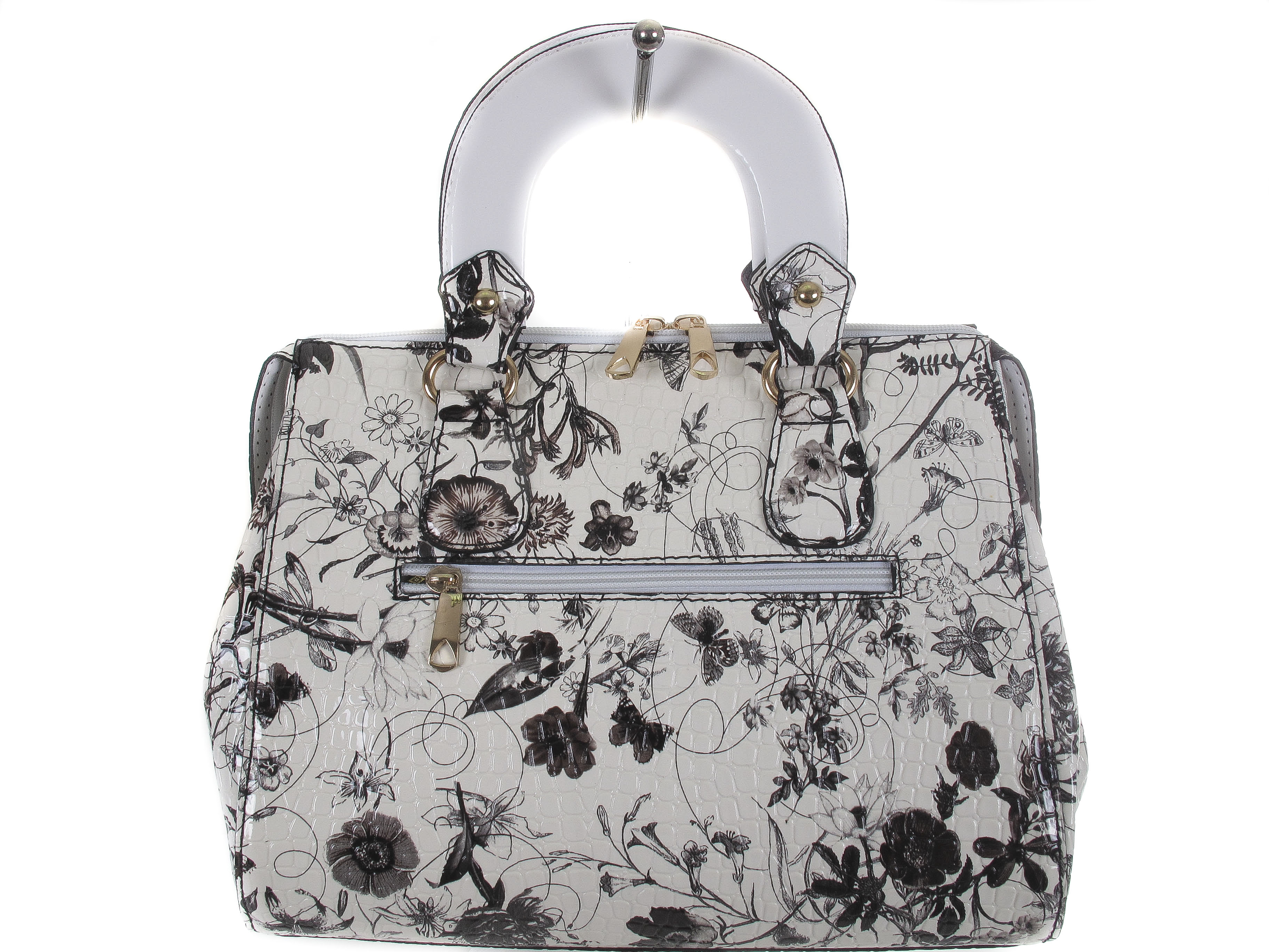 Дамска чанта еко кожа бяла на цветя #139-9391