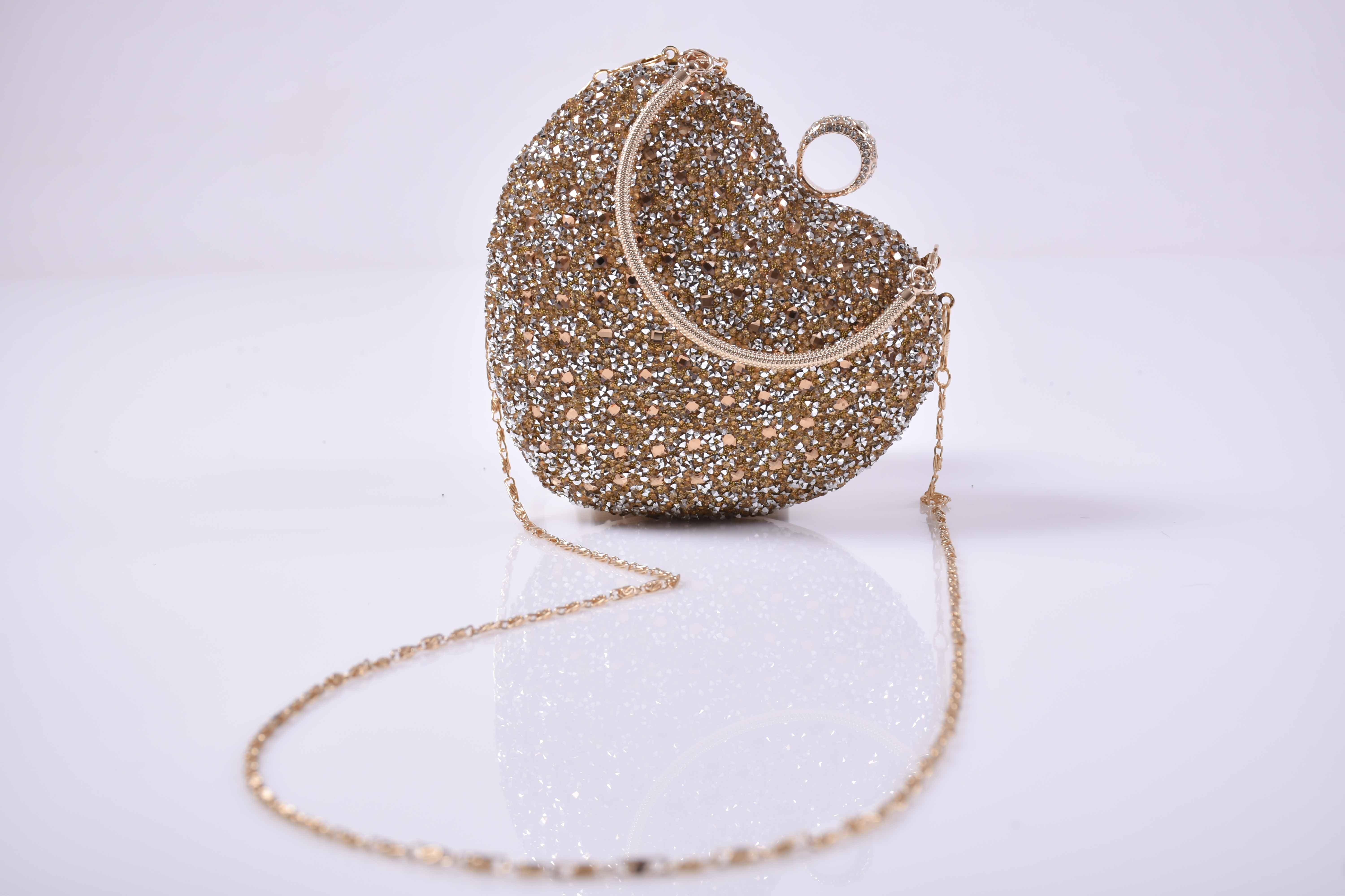 Елегантна абитуриентска чанта комбинация едър брокат ситен брокат злат #501-1100