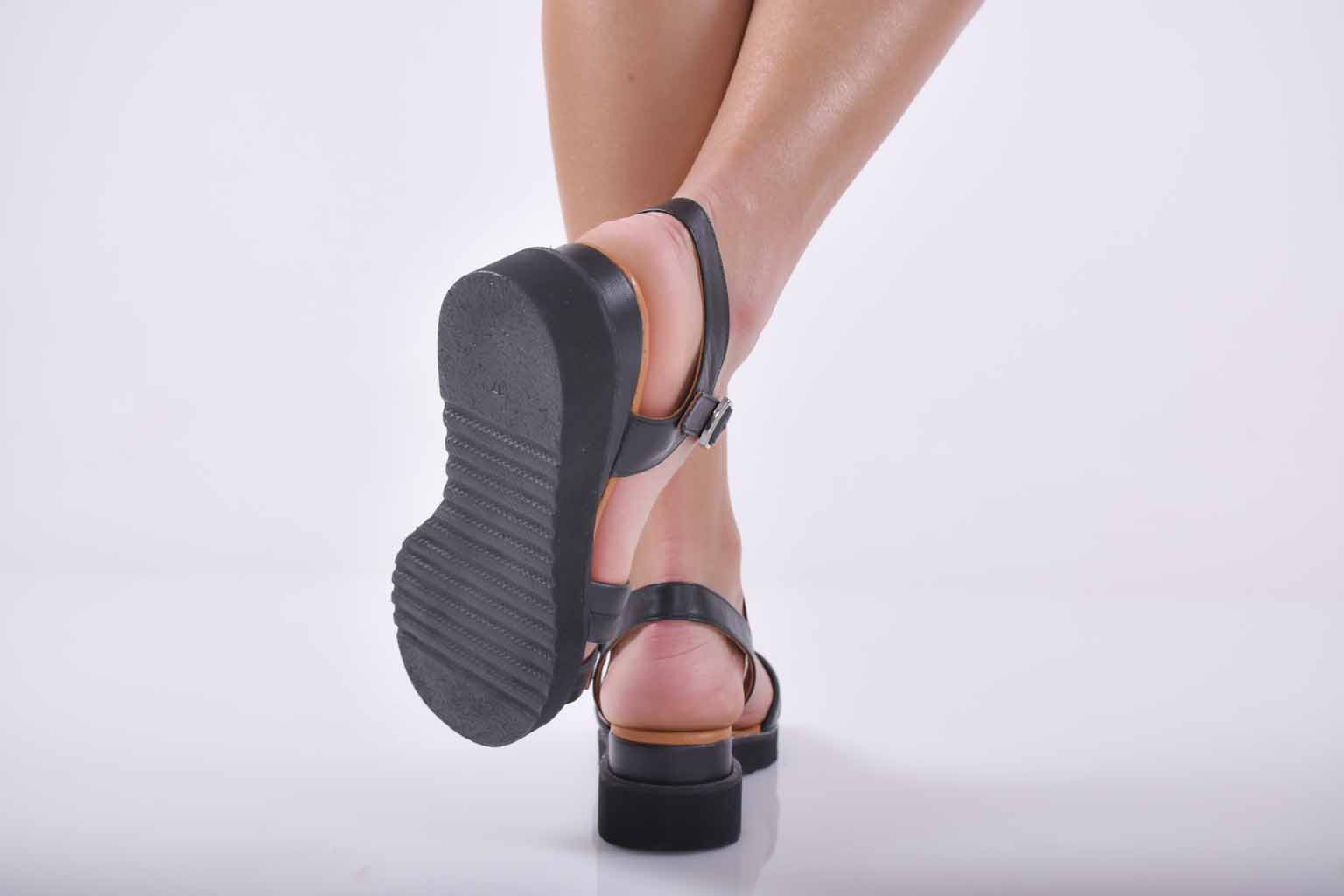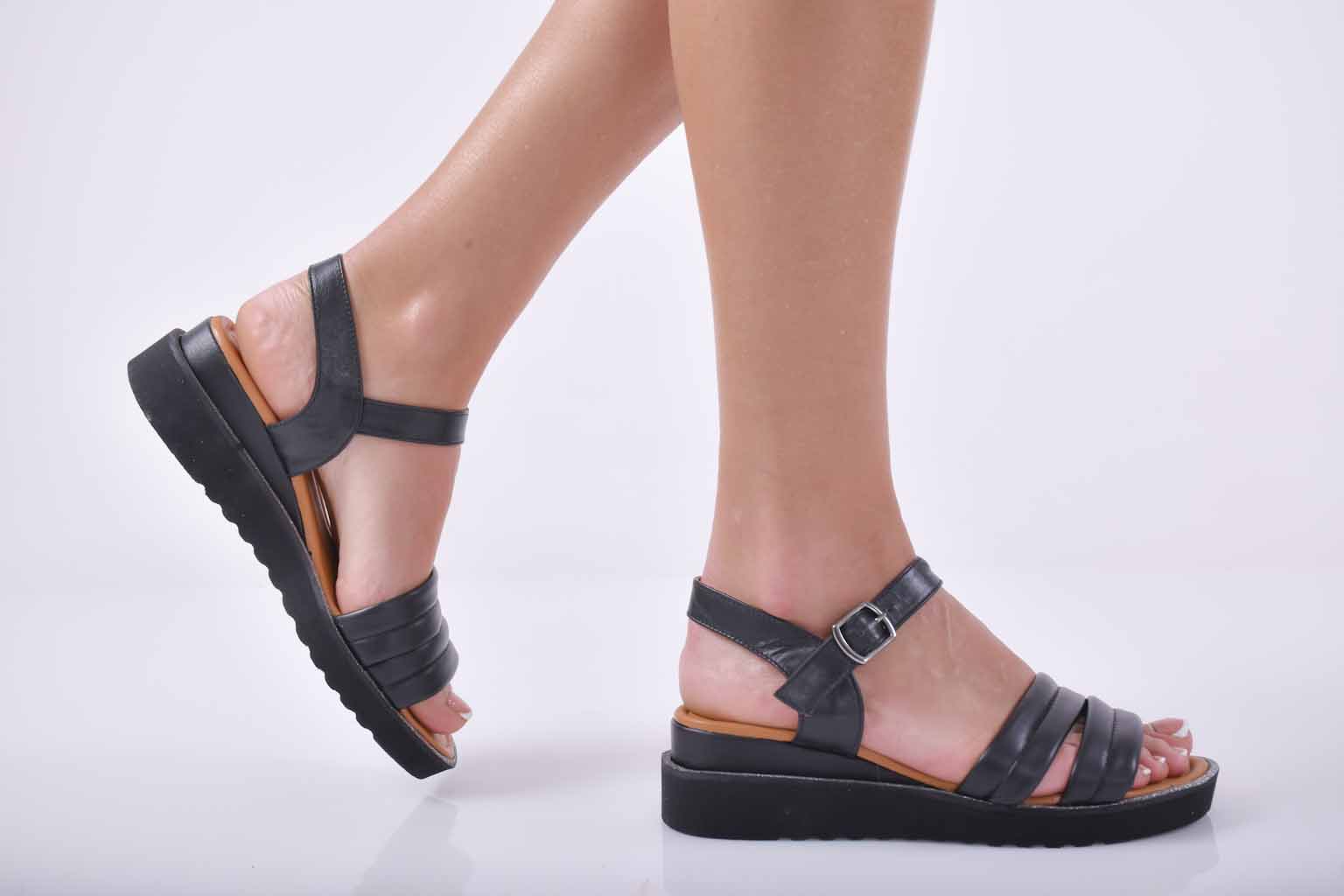 Сандали естествена кожа с анатомична стелка черни EOBUVKIBG