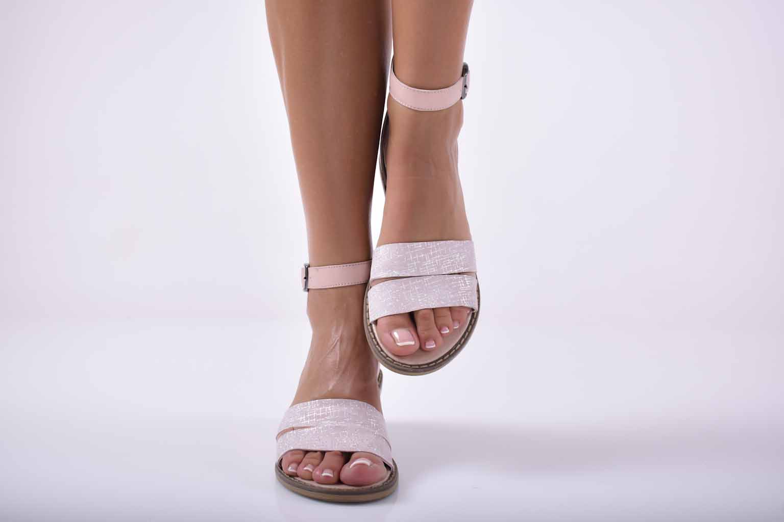 Дамски равни сандали естествена кожа пудра EOBUVKIBG #501-1731